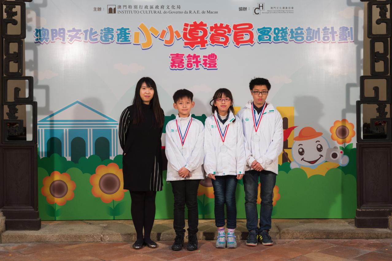 由文化局主辦、澳門文化遺產協會協辦的“澳門文化遺產小小導賞員實踐培訓計劃2017”已於去年十二月三十一日順利完成,並於日前(一月六日)在鄭家大屋舉行“澳門文化遺產小小導賞員實踐培訓計劃2017”嘉許禮,以表揚參與的學員。一眾嘉賓、學員及家長共同見證是次計劃的成果,現場氣氛熱烈,濟濟一堂。出席嘉賓包括文化局代副局長梁惠敏、教育暨青年局代表學前暨小學教育處代處長吳美琪、大三巴哪咤廟值理會會長葉達、澳門培道中學校長李寶田、澳門文化遺產協會項目主任李雪芬及資深歷史學者陳樹榮。