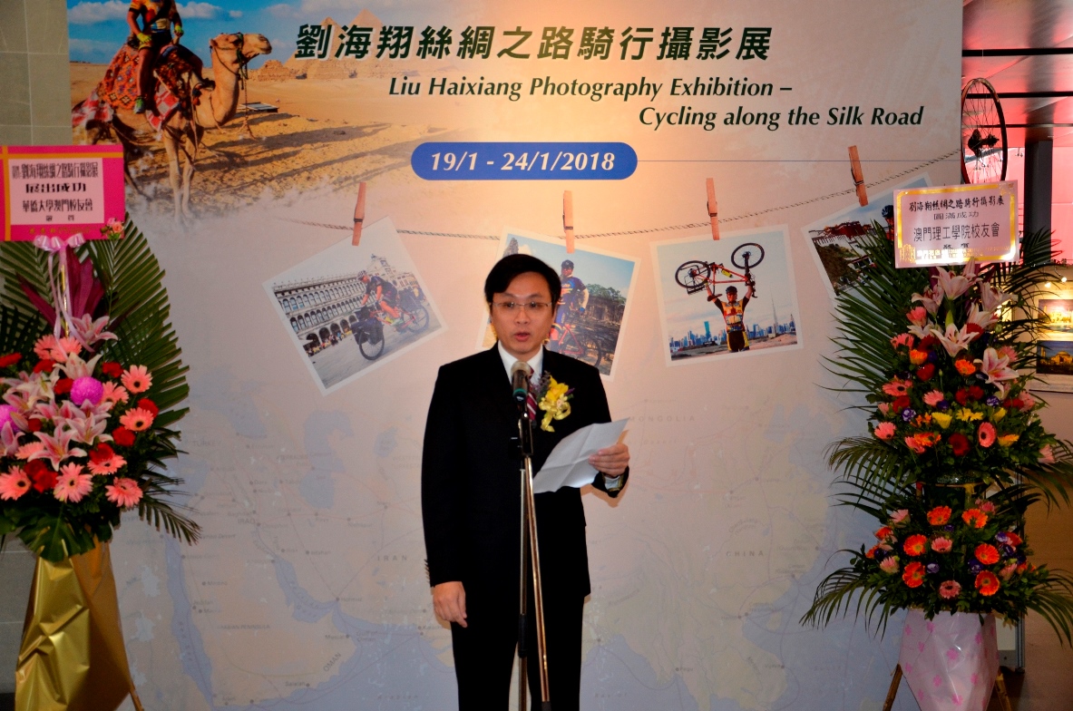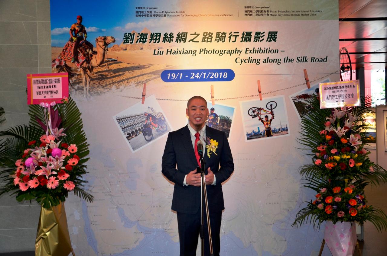 由澳門理工學院及振興中華教育科學基金會主辦,澳門理工學院校友會及學生會協辦的「劉海翔絲綢之路騎行攝影展」19日在澳門理工學院明德樓展覽廳揭幕,展出劉海翔 “萬里走單騎”的成果,總計收錄有43個主題,398張照片,展期至24日。