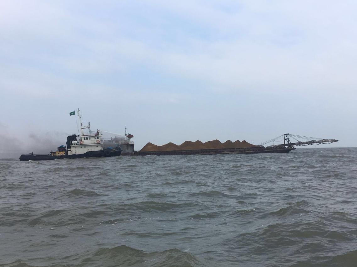 今日下午約2時30分,海事及水務局船舶交通管理中心接報,有一艘運沙船駛至機場跑道以北約0.5海里處時發生故障,機房出現冒煙情況,海關與海事局即時派船到現場協助。海關船隻抵達現場後對肇事貨船上7名船員進行緊急撤離,無人受傷。其後海事局與海關的船隻向肇事船隻射水降溫,船隻已落錨固定位置且沒有即時危險。事故未有對船隻的通航造成影響。