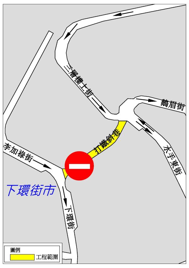 配合緊急水管維修,3月26日(周一)至4月1日(周日),介乎下環街與鵝眉街之間的一段打鐵斜巷封閉交通,由河邊新街前往風順堂街方向之車輛,需繞經西環湖景大馬路、民國大馬路、西灣街及南灣大馬路行駛。