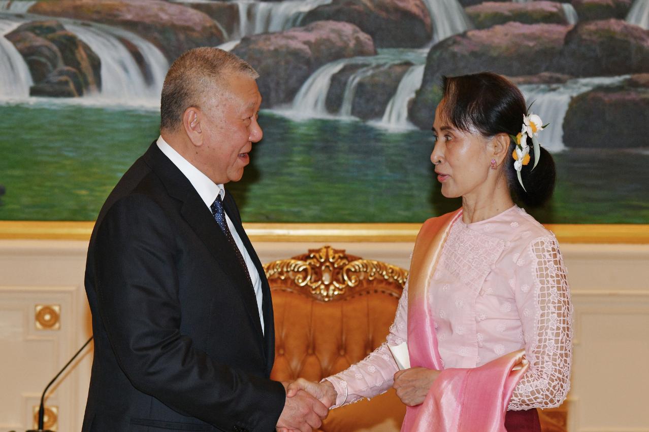 何厚鏵、譚俊榮及特區政府代表團一行抵達緬甸首都内比都後,與緬甸國務資政、總統府部部長兼外交部部長昂山素姬禮節性會面,期望就教育、旅遊、商貿投資等方面加強交流與合作。