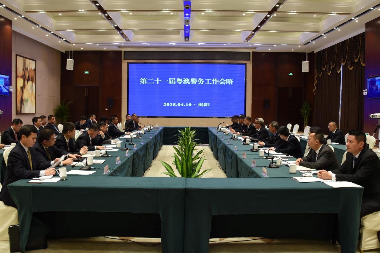 保安司司長黃少澤4月9日至11日率領本澳代表團前往廣東省揭陽市,與廣東省副省長、省公安廳廳長李春生率領的廣東省警方代表團進行“第二十一屆粵澳警務工作會晤”,雙方回顧及總結了兩地警方過去一年的合作情況,並商討了2018年的合作事宜。