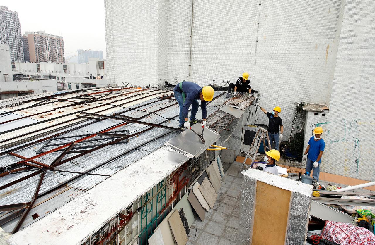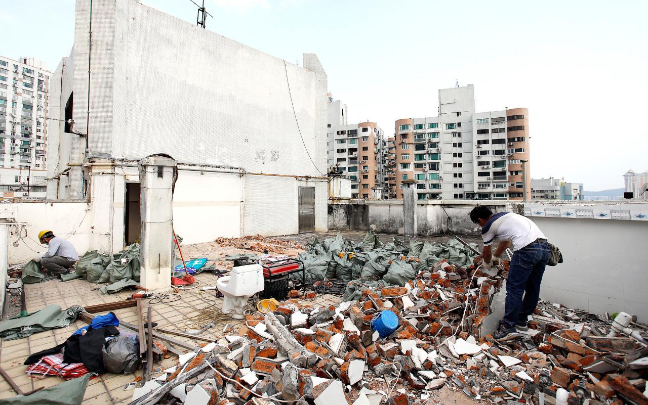 “非法工程跨部門常設拆遷組”近日分別清拆了黑沙環區及氹仔區兩座高層大廈天台僭建物。其中,位於黑沙環新街一座高層大廈的天台被違法加建由金屬支架、金屬頂蓋及金屬圍網等組成的僭建物。土地工務運輸局發現後展開跟進程序,要求在期限內自行清拆非法工程及將天台還原,惟在有關期限屆滿後,現場違法事項仍然存在,故拆遷組於上月底執行清拆工作。另一宗個案則位於氹仔沙維斯街一幢高層大廈天台,局方接獲投訴指該處正進行僭建物翻新工程,包括以磚牆、金屬簷篷、玻璃窗戶等組成的僭建物,經派員查證屬實隨即發出禁工令,及後並展開程序跟進,因有關期限屆滿,現場違法事項依舊,拆遷組亦於上月底行動清拆。