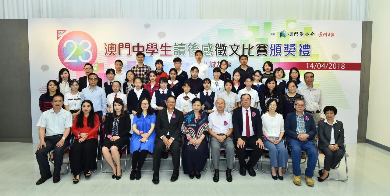 由澳門基金會與澳門日報合辦的“第二十三屆澳門中學生讀後感徵文比賽”反應熱烈,共收到23家學校近370份參賽作品。有關頒獎禮已於2018年4月14日在澳門教科文中心舉行,主辦單位向二十名獲獎學生頒發獎座,以示鼓勵。國家藝術基金副理事長兼秘書長趙少華,澳門基金會行政委員會主席吳志良,澳門日報社長陸波,澳門筆會副理事長湯梅笑,高中組評判陳志峰、水月,初中組評判李公榮、趙陽、楊穎虹,以及各校校長、老師、獲奬同學出席典禮,場面熱鬧。