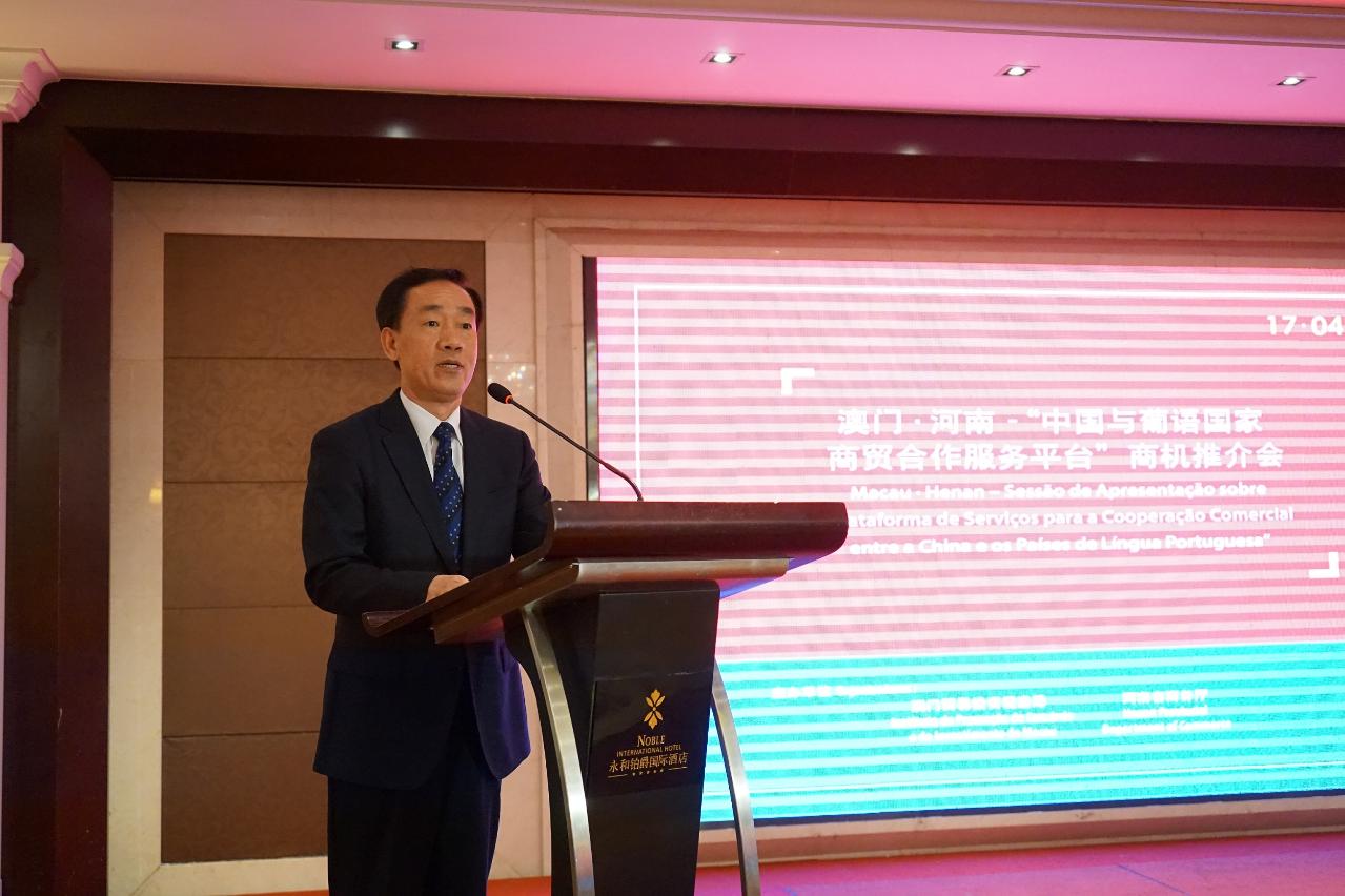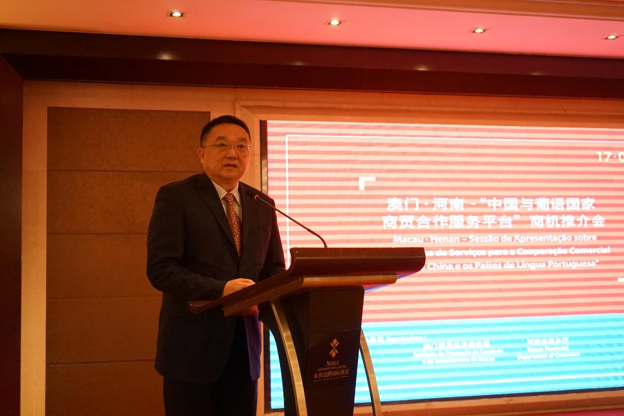 貿促局主席張祖榮致辭時表示,藉著舉辦推介活動,可以進一步拓展河南、澳門以及葡語國家的經貿合作,尤其發揮澳門作為“中國與葡語國家商貿合作服務平台”的作用以及對外精準聯繫的功能,為河南企業和投資者開拓葡語國家以至國際市場提供有利的條件。