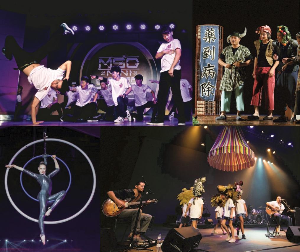 五月十一至十二日,藝術節聯同新加坡九年劇場聯合製作,共同反諷演譯《茱莉小解》於崗頂劇院上演;五月十二至十三日期間,當代劇場巨擘鈴木忠志攜同經典代表作《特洛伊女人》來澳,改編自古希臘悲劇大師尤里庇底斯的同名作品,上演戰火過後的無盡哀愁,同時充滿日本傳統藝能的視覺元素和藝術底蘊;歐陸迅速崛起的菲律賓新銳編舞家Eisa Jocson獻上近作《女公關》以呈現女性身體及性別政治;親子舞蹈表演《海綿寶寶》以各種海綿道具,吸引親子觀眾於海綿樂園互動;《百藝看館》於五月十一至十三日連續三晚在祐漢公園舉行,免費為觀眾帶來多場精彩表演,呈現藝術多樣性及趣味性,讓藝術在社區文化中熱烈盛放。此外,延伸活動《塗鴉初體驗》及《親子紙偶工作坊》在五月十二至十三日同樣於祐漢公園舉行,活動時間分別為下午三時至四時及下午五時三十分至六時。