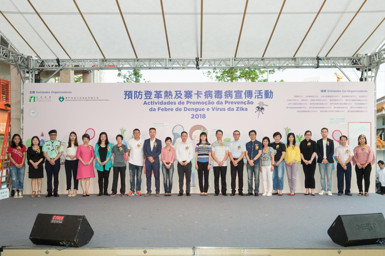 預防登革熱工作小組今(12)日在氹仔花城公園舉行2018年預防登革熱及寨卡病毒病宣傳活動,透過啟動儀式、圖片展覽、攤位遊戲和節目表演,加強市民對預防登革熱及寨卡病毒病的知識,提醒市民時刻防範蚊患。