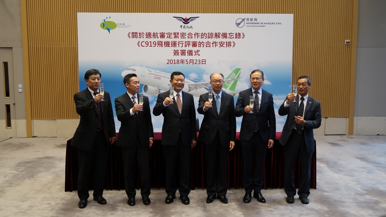 中國民用航空局、香港特別行政區民航處和澳門特別行政區民航局今天(5月23日)在香港就聯合開展國家生產C919飛機的運行評審和加強三地適航審定合作分別簽署了合作安排和備忘錄,透過推動標準和流程的協調統一,促進融合發展。