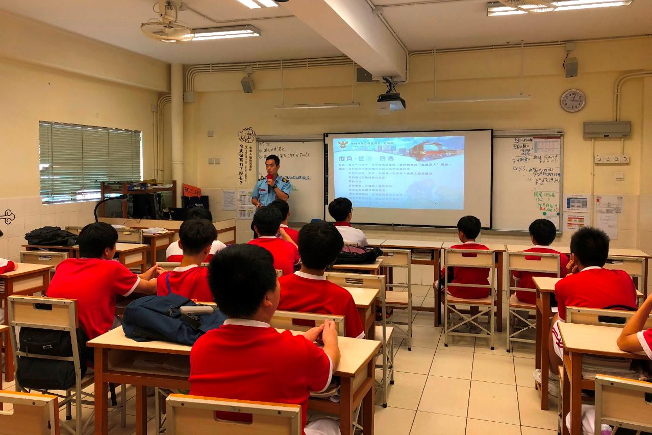 消防局配合警察總局的民防宣傳工作,走進校園進行宣傳講座,目的是為了從教育方面著手由小提升學生的防災避險意識。