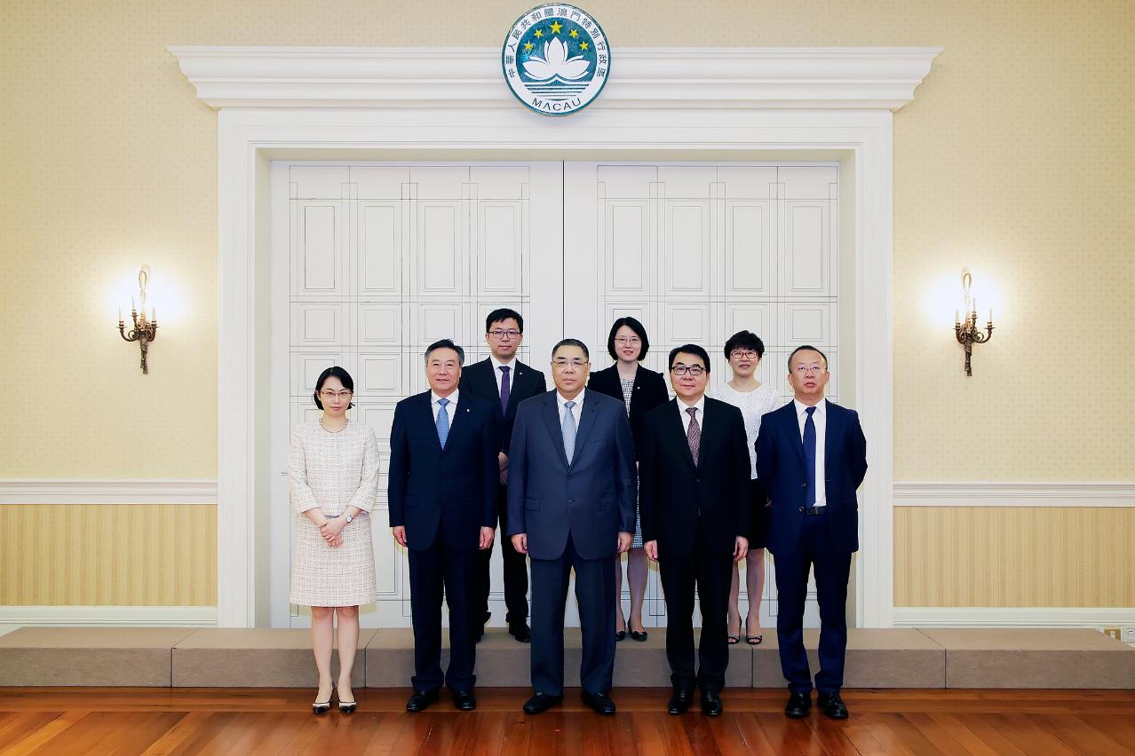 會面中,行政長官表示,特區政府非常重視維護金融系統的安全穩定,在發展經濟的過程中,金融投資以安全、低風險為主。未來,金融發展將會是粵港澳大灣區發展的一部分,澳門經過多年的經驗累積和實踐,將逐步由過去作為聯繫人的角色,進一步發展到以融資、投資和營運等方面,特區政府亦會繼續發展融資租賃等特色金融產業,特別是發揮澳門作為葡語系國家和東盟國家的平台優勢,積極參與粵港澳大灣區建設。