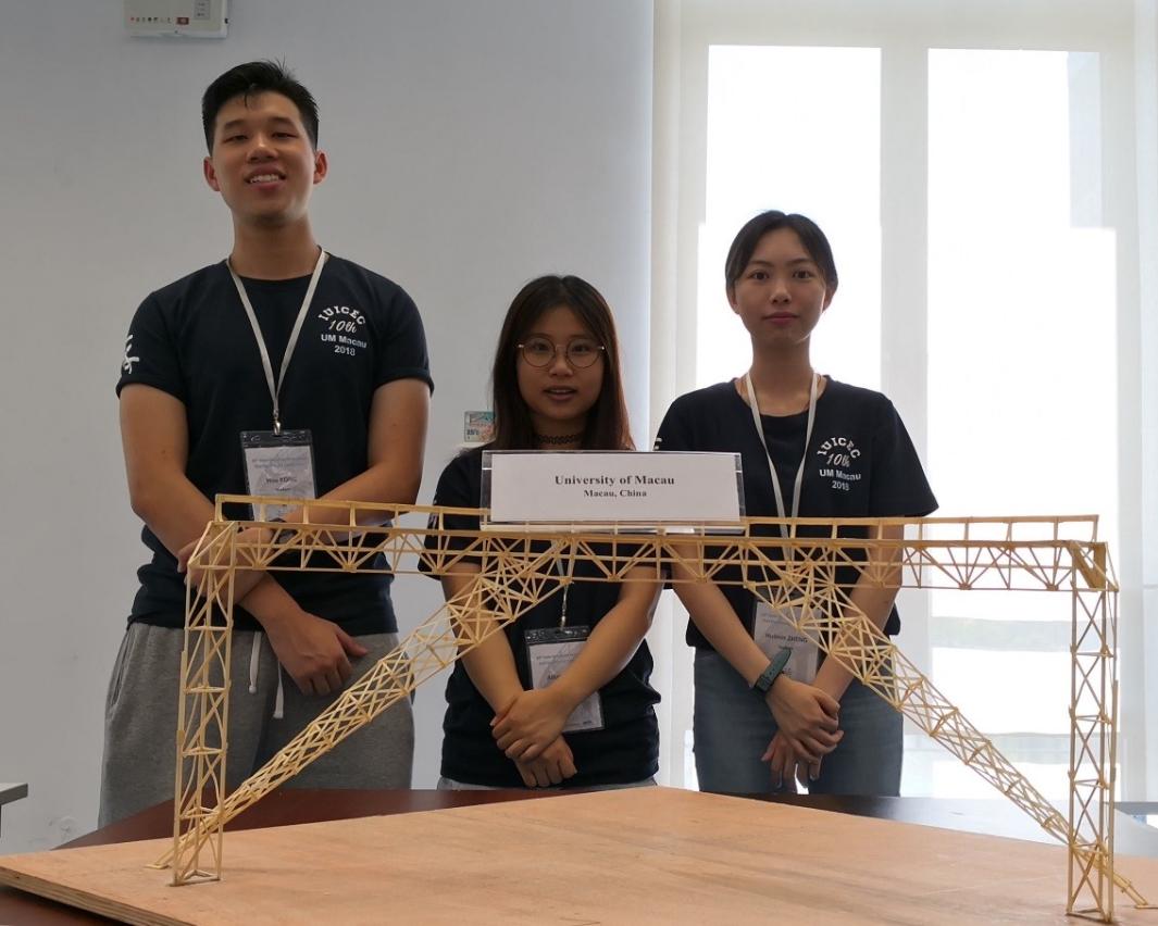 澳門大學科技學院土木及環境工程系學生張艾倫、鄭慧敏及龔昊組隊參加“第十屆亞洲校際土木工程邀請賽",與來自亞洲及澳洲15支著名高校的隊伍同台較量,獲評審團一致好評,奪得一等獎佳績,顯示澳大學生在土木工程的實力再次獲國際認可。