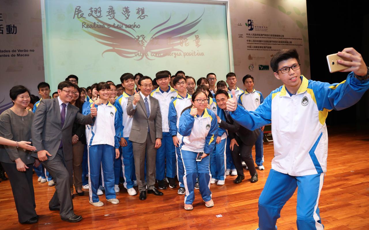 “澳門師生暑期赴外活動啟動禮”於7月5日下午在教業中學舉行。社會文化司司長譚俊榮、教青局局長老柏生、中央人民政府駐澳門特別行政區聯絡辦公室教育與青年工作部徐婷部長、中國人民解放軍駐澳門部隊高志軍大校、中華人民共和國外交部駐澳門特別行政區特派員公署公共外交及新聞部朱婷副主任、教青局副局長梁慧琪和龔志明、青年事務委員會委員、教學人員專業委員會委員、澳門中華教育會代表、澳門天主教學學校聯會代表、澳門公職教育協會代表、合作機構代表、各校校長及各代表團約500名師生出席了啟動禮。