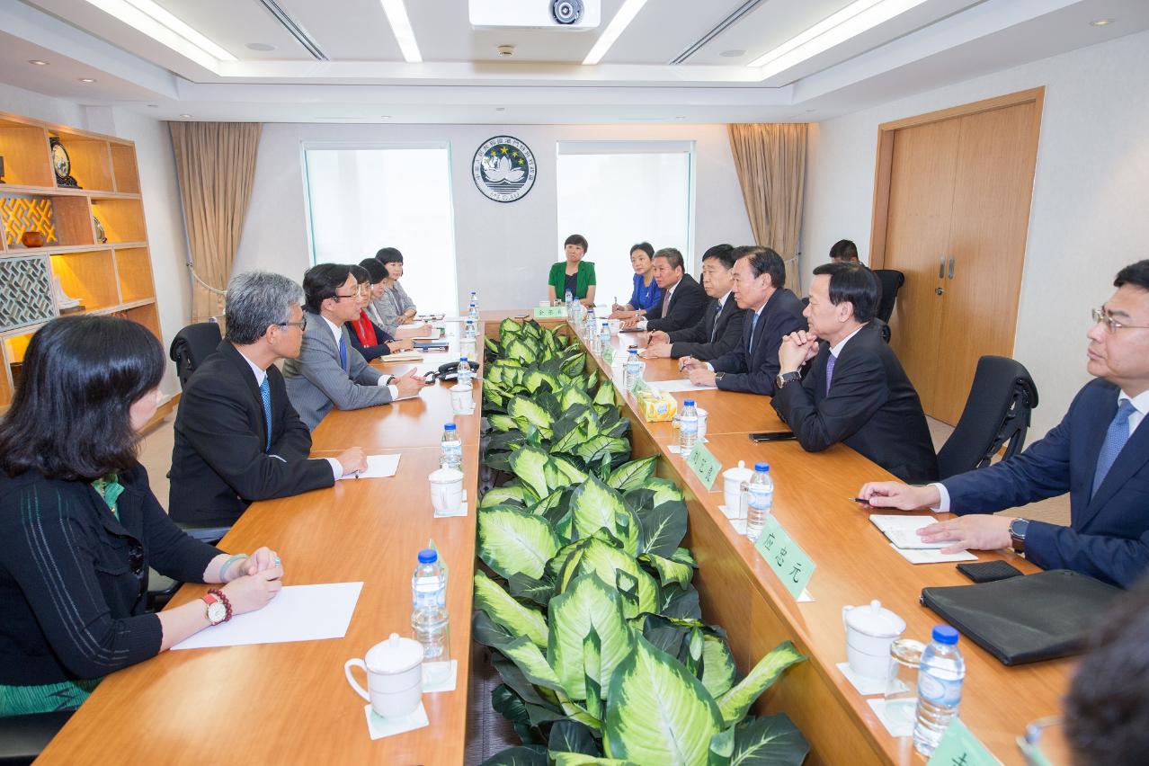 社會文化司司長譚俊榮今(9)日在特區政府總部與遼寧省政協主席夏德仁一行禮節性會面,雙方並就加強澳門與遼寧兩地的旅遊、文化、教育等領域交流交換意見。