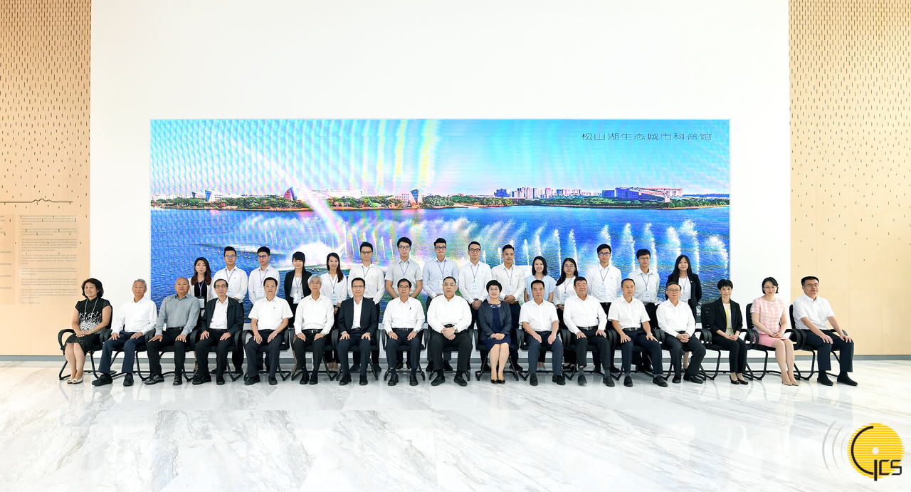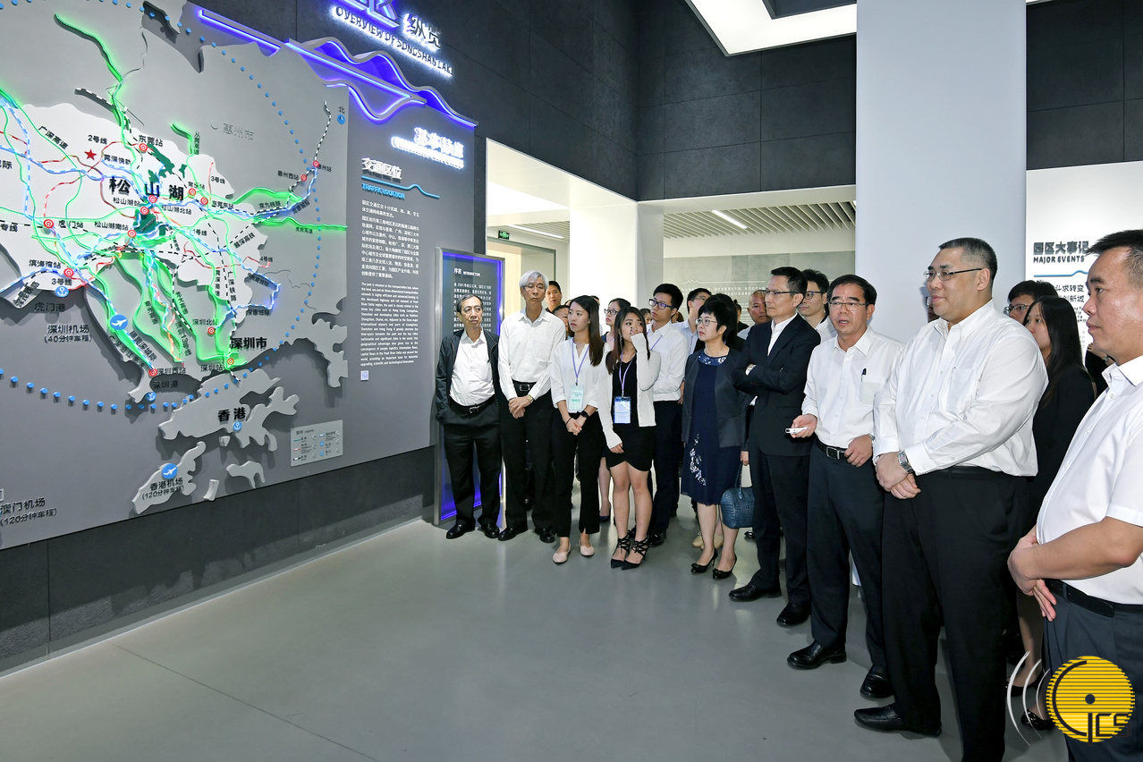 行政長官、政府代表團及15名“千人匯”匯員抵達東莞後,隨即在東莞市委書記梁維東、市委常委黃少文的陪同下,參觀東莞松山湖生態城市科普館、“園區展覽”廳和聽取介紹,並觀看松山湖宣傳短片,最後進行合照。