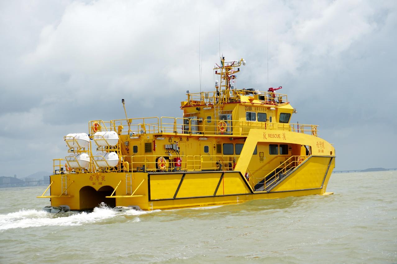 為提升本澳應對海上事故的救援能力,海事局先後建造了救援船“南灣號”及“西灣號”,兩船均為鋁合金雙體船。即將投入運作的新救援船“西灣號”船長25.5米,型寬7.8米、滿載排水量88噸、抗風能力達蒲氏風級8級;採用噴水推進方式,船速達30節,可實現低速原地回轉和平移,操縱靈活、使用安全。“西灣號”配備先進的搜救設備,包括熱能夜視系統、大型泛光燈、醫療室、救生筏、擔架床升降平台及直升機吊運區,將有效強化海事局的船隊力量,進一步提升澳門管理海域的海上搜救能力。