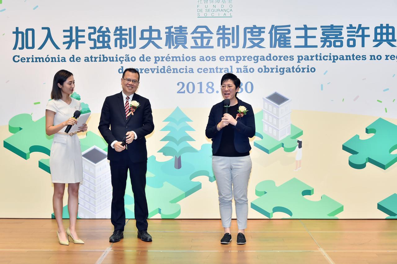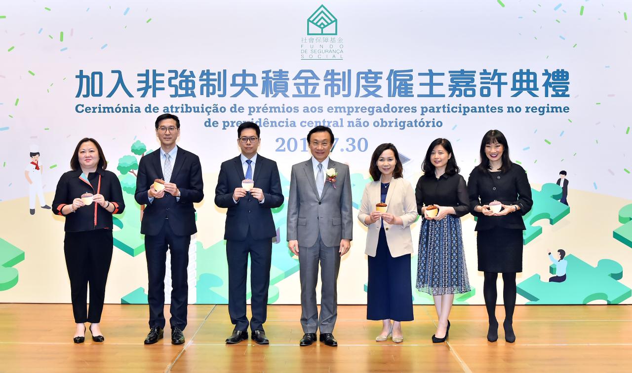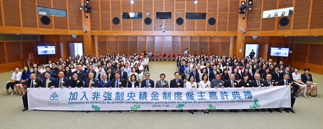 社會保障基金於7月30日下午4時假科學館會議廳舉行“加入非強制央積金制度僱主嘉許典禮",由社會文化司司長譚俊榮擔任主禮嘉賓。譚俊榮在致辭時表示,非強制央積金實施至今約半年,參與情況令人鼓舞,現時共有78個僱主加入公積金共同計劃,當中包括社會服務、金融及教育等機構,其中約九成僱主是已經設有私人退休金計劃,現在以銜接方式加入制度;約一成的僱主則是首次設立央積金的制度;而僱員眾多的多間博企及公用機構,也正積極推動和籌備之中。由於非強制央積金是累積型的退休保障制度,越早加入越有利累積僱員的退休保障。他鼓勵未參與的僱主,盡快加入非強制央積金。