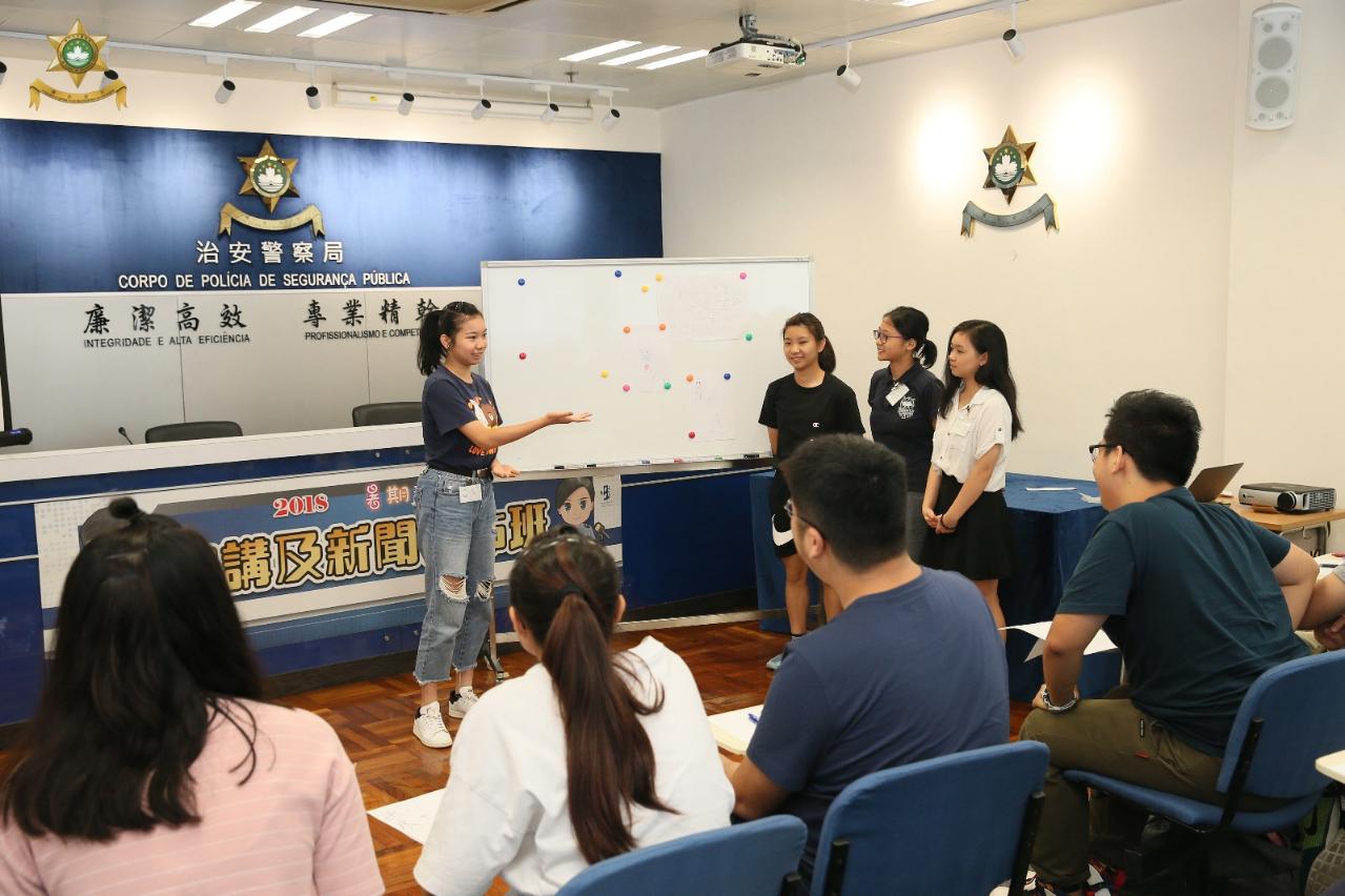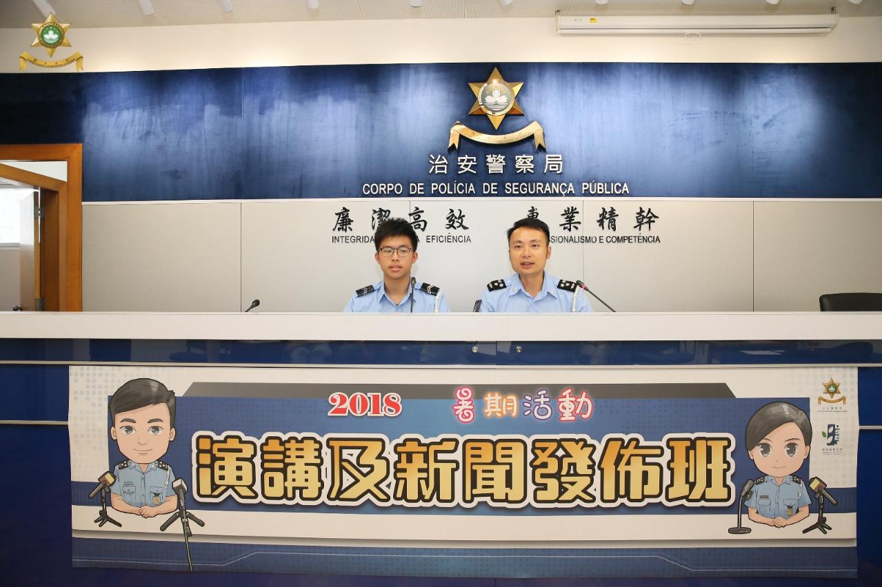 治安警察局與教育暨青年局合作,在2018年暑期活動推出「演講及新聞發佈班」,讓青少年認識警方新聞發言人的工作和學習演講的技巧。