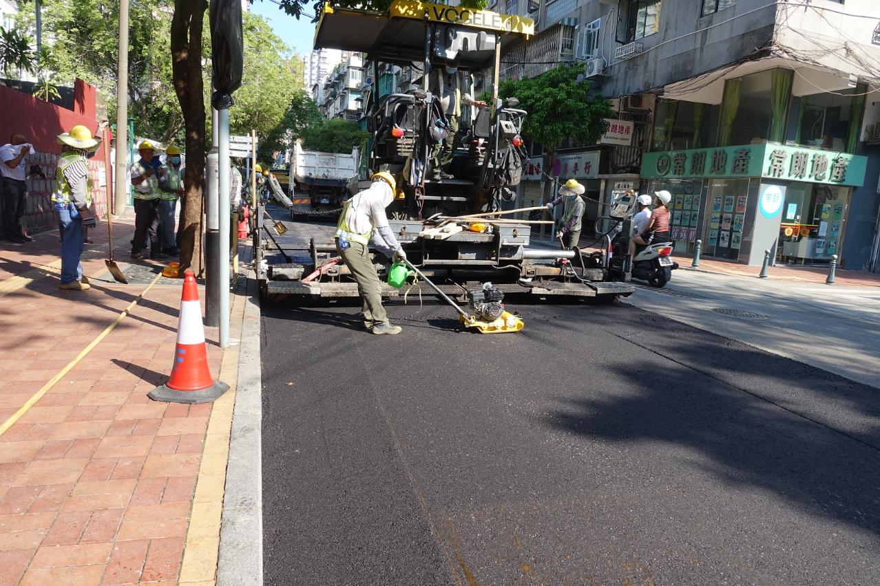 是次工程民署已預早與交通事務局及各專營公司協調,讓管線工程先進行後再重鋪路面,以避免重複開挖的情況。工程主要刮去舊瀝青後重鋪、更換集水井及沙井蓋並調整至路面適當平水。考慮到該路段為交通主幹道,車流量極大,新鋪設的路面主要採用骨料粒徑較大的瀝青,以增加瀝青鋪面的承載能力,減少變形及加強耐久性。