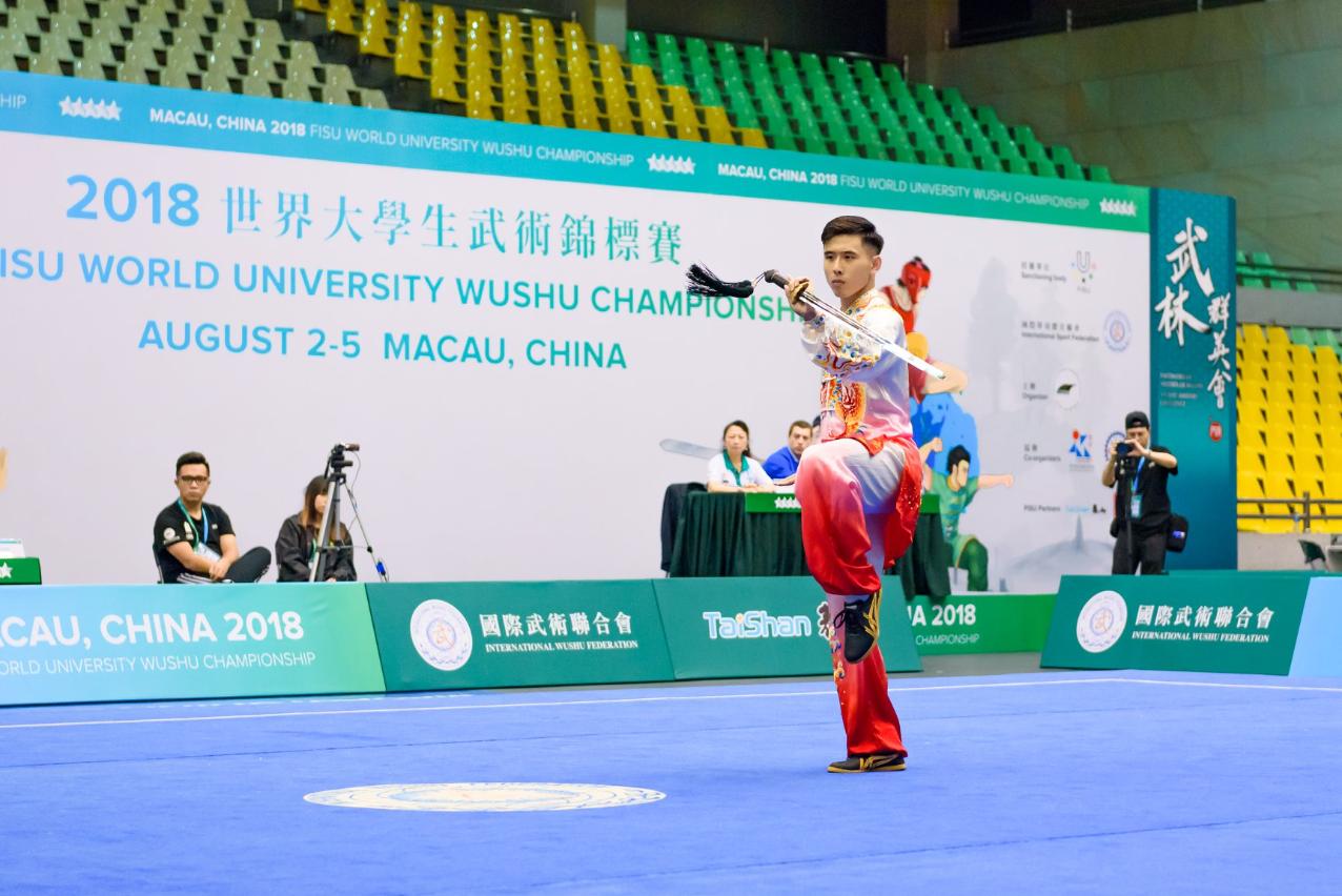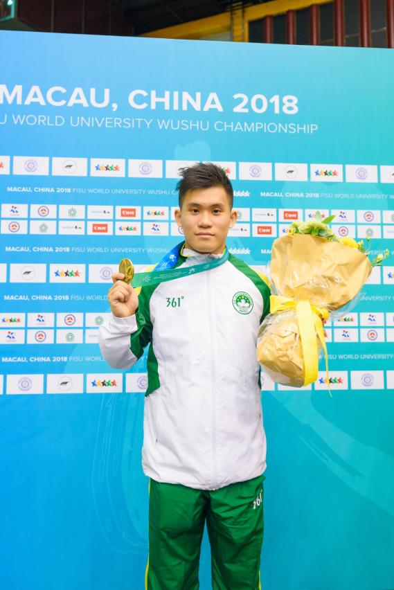 澳門理工學院體育教育學士學位課程趙偉強同學在男子南拳項目表現出色,奪得金牌,繼世青賽和世錦賽後,再次摘得世界級賽事桂冠,以及於男子南棍項目與十二名選手對決,僅以0.02分之差不敵日本選手獲銀牌。體育教育學士學位課程庄嘉成同學則於男子太極劍賽事勇奪銀牌,同為修讀體育教育的簡繼華同學則於散打男子六十公斤級別晉級後,最終獲該項目銅牌。