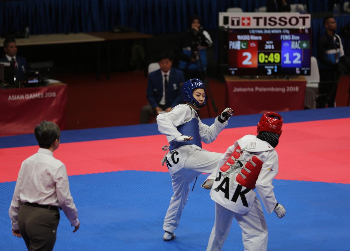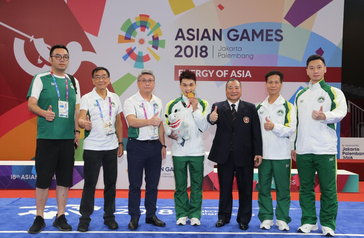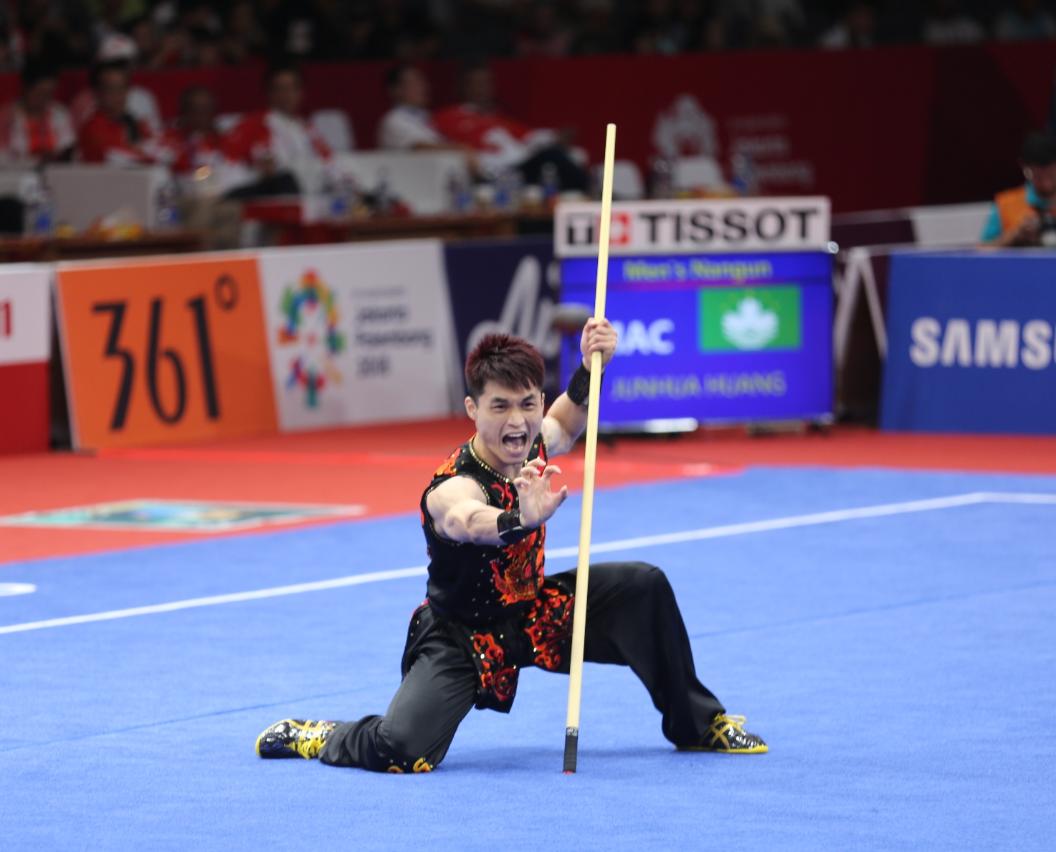 在印尼參加『第十八屆亞洲運動會』的中國澳門體育代表團,今日(21日)在武術項目獲取獎牌,黃俊華(HUANG JUNHUA)在男子南拳及南棍全能項目以總分19.43獲得金牌,是體育代表團今屆亞運會首面獎牌,也是澳門代表團參加亞運會以來第二面金牌。