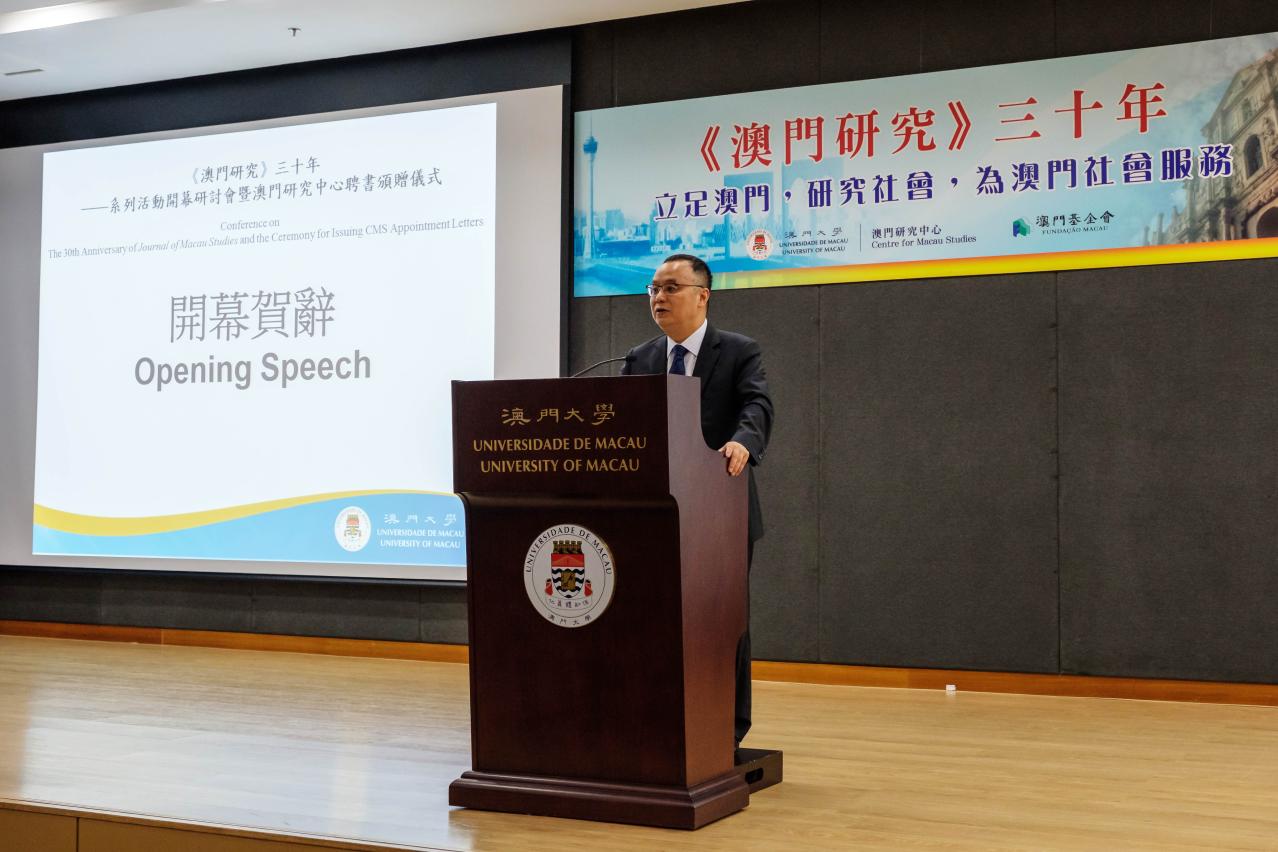 澳門大學澳門研究中心今(30)日舉行“《澳門研究》三十年——系列活動開幕研討會暨澳門研究中心聘書頒贈儀式",邀請了眾多專家學者就澳門的不同議題進行分析討論。同場,澳大校長宋永華向34位專家學者頒授兼任教員聘書,成為澳門研究中心的兼任教員,進一步推進知識及澳門學術和政策研究活動,為促進澳門的可持續發展和社會出謀劃策。