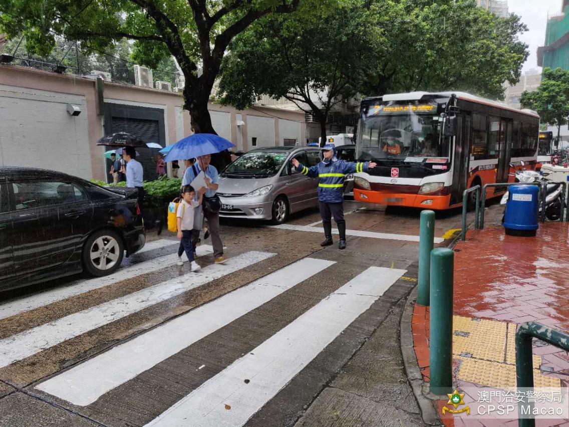 治安警察局呼籲公眾,應留意最新的交通及天氣消息,以便掌握出行時間;家長在接送子女上學放學時應使用學校附近的上落客區,以免造成交通擠塞而影響其他道路使用者。