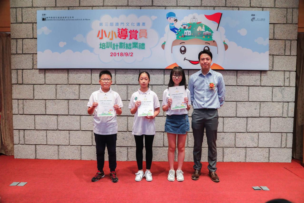 文化局文化遺產廳代廳長蔡健龍、澳門文化遺產協會項目主任李雪芬、資深歷史學者及教育家劉羨冰、資深歷史學者陳樹榮及資深導賞員何家傑、導師、一眾學員及家長等出席結業典禮。