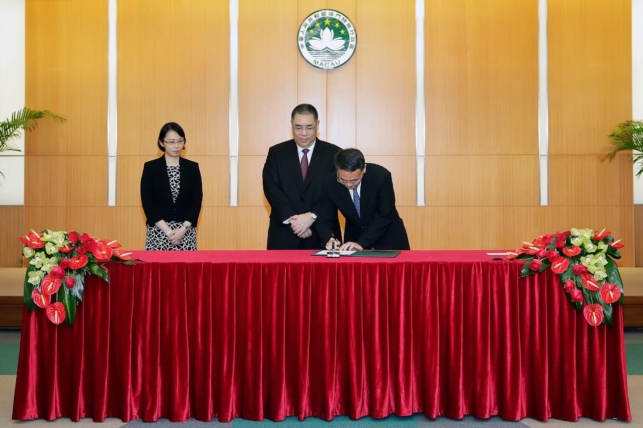 在行政長官崔世安監誓下,政策研究和區域發展局局長米健今(6)日上午在政府總部多功能廳宣誓就職。行政長官辦公室主任柯嵐見證。