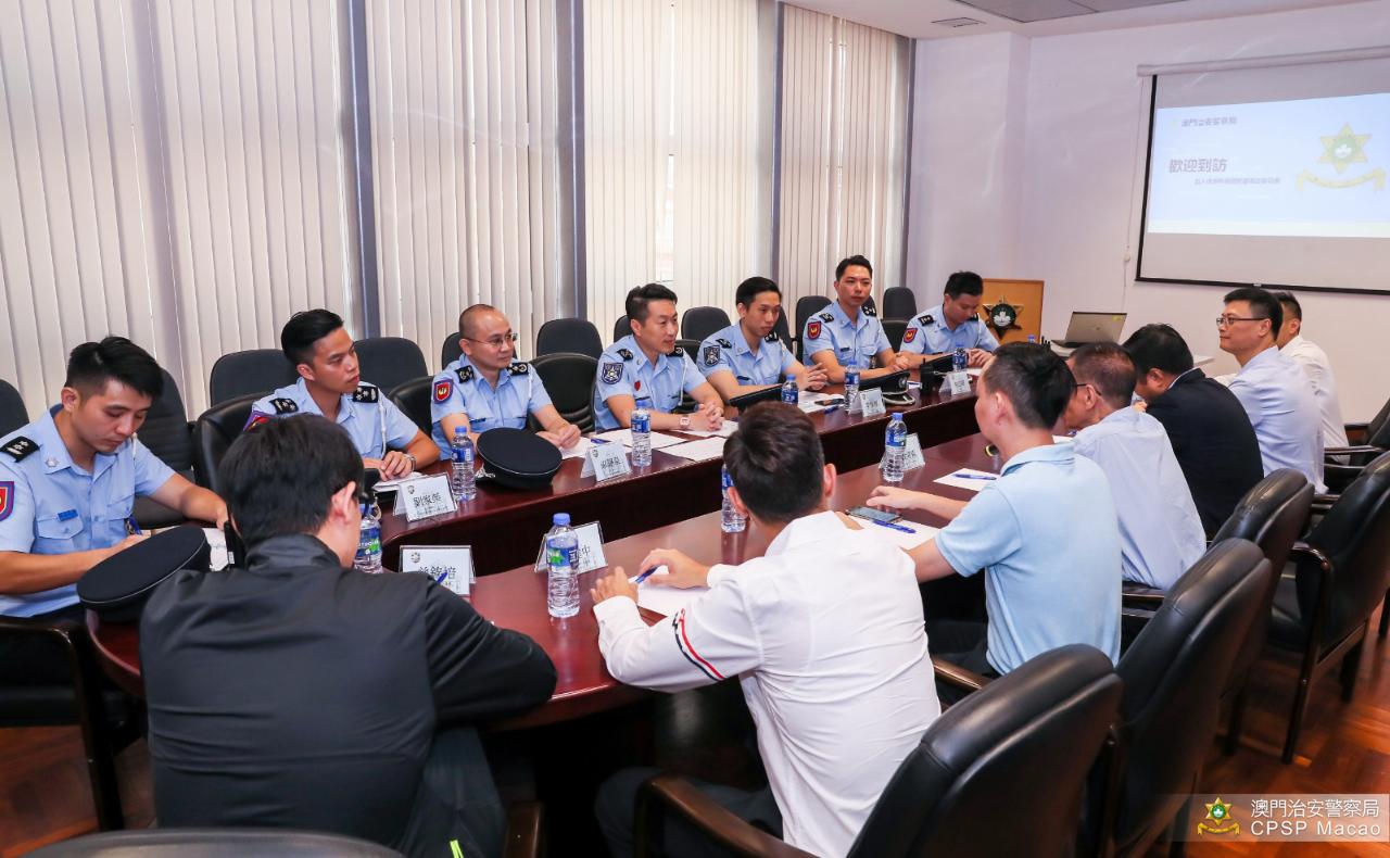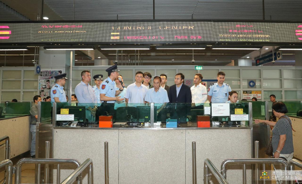 9月7日,治安警察局黃偉鴻代副局長、出入境事務廳梁錫泉廳長與眾警官,向澳門社會民生促進會陳溥森會長、鄭安庭議員等代表介紹關閘邊境站的設施和出入境事務廳的工作概況,雙方亦就最新的社區治安狀況及警務工作深入交流。