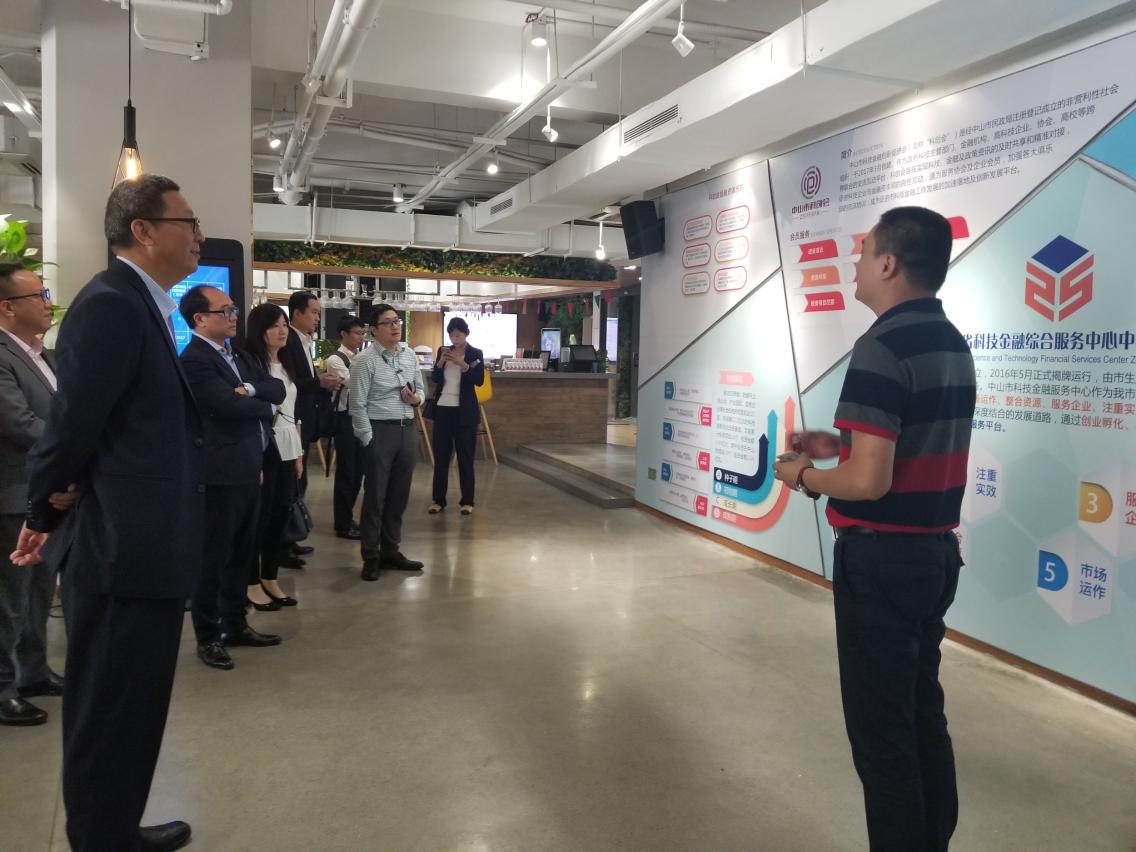 於中山期間,主辦及支持單位一行前往了廣東省科技金融綜合服務中心中山火炬高新區分中心及中山市東區的金融街, 就科技金融創新、金融行業創業培育等領域與當地金融服務機構作交流,了解當地金融及相關行業的發展最新情況。