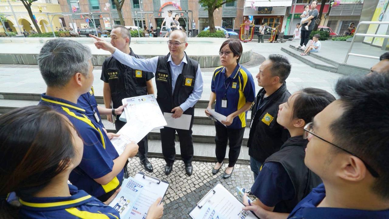 今日上午,司警局陳堅雄副局長、刑事偵查範疇的博彩及經濟罪案調查廳梁文照廳長,以及後勤支援範疇的管理及計劃廳楊春麗廳長,帶領人員前往司打口、沙梨頭一帶進行防風防災巡查,接觸區內商舖負責人及居民,瞭解社區應對颱風的準備情況,並就防災措施作出指導及建議。