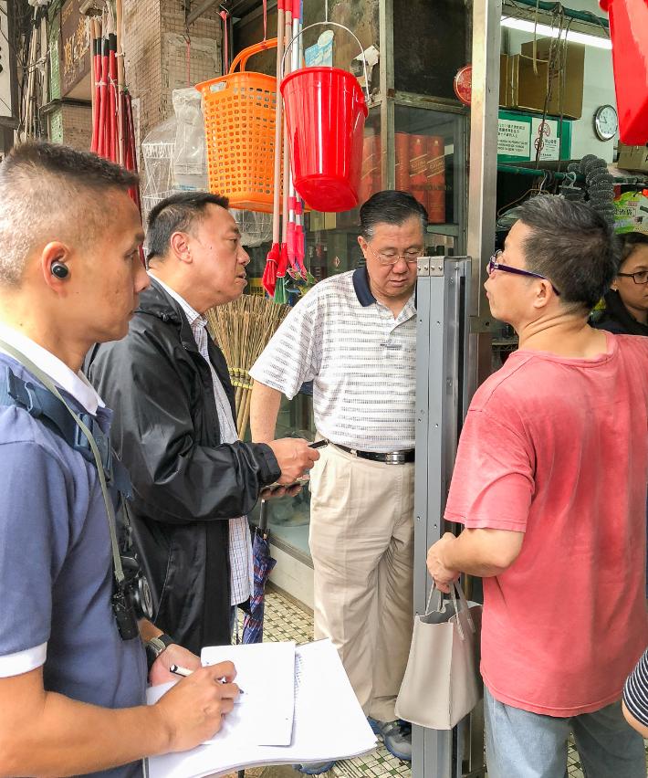 超級颱風“山竹”襲澳期間,下環街、十月初五街及路環等傳統社區出現不同程度的水浸,為了解颱風對社區中小微企的影響,尤其是防洪門和防浸升降台所發揮的實際功效,經濟財政司司長梁維特,經濟局局長戴建業和生產力暨科技轉移中心理事長孫家雄等今先後到澳門半島和路環多個社區探訪受水浸影響的中小微企,聽取意見。