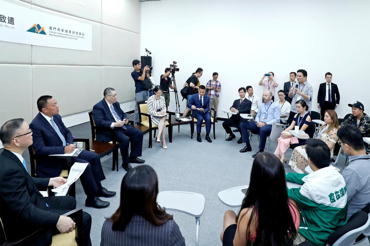 儀式後,崔世安與約20名創孵中心青年會員和始創企業代表進行交流,他們的創孵項目涉及創新科技、網絡服務平台、網上教育培訓、科研、時裝設計及精品製作等。出席交流會的還包括經濟財政司司長梁維特;澳中致遠投資發展有限公司行政總裁、澳門青年創業孵化中心董事長崔世平;行政長官辦公室主任柯嵐及經濟局局長戴建業等。