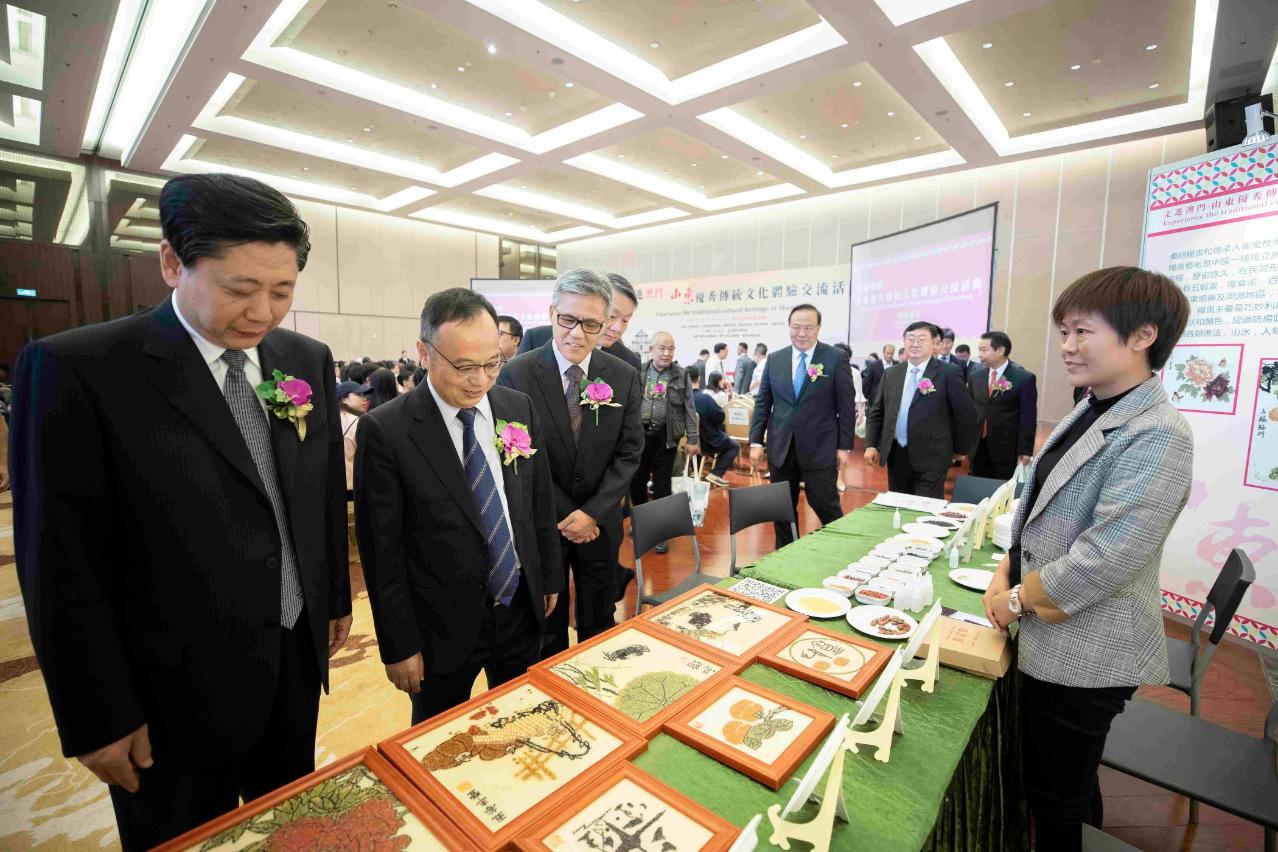 王藝華表示,山東是內地的文化大省,有著豐富的非物質文化遺產,目前山東已有剪紙藝術、古琴藝術、皮影戲等八個項目被聯合國教科文組織列入《非物質文化遺產名錄》,全省國家級代表性項目名錄超過170項,省級名錄超過750項,是次文化交流及體驗活動匯集了威海剪紙、威海鋦藝、曲阜楷木雕刻、魯班鎖技藝、曹州面人、東明糧畫、德州金絲彩貼和德州黑陶微雕八個山東省各級非物質文化遺產項目,同時八位非物質文化遺產傳承人隨團來澳親作展示,展現正宗的山東非物質文明與地方特色,讓大眾感受民族藝術的精緻瑰麗,透過中華傳統優秀文化的交流,加深魯澳兩地同胞的感情,促進合作。