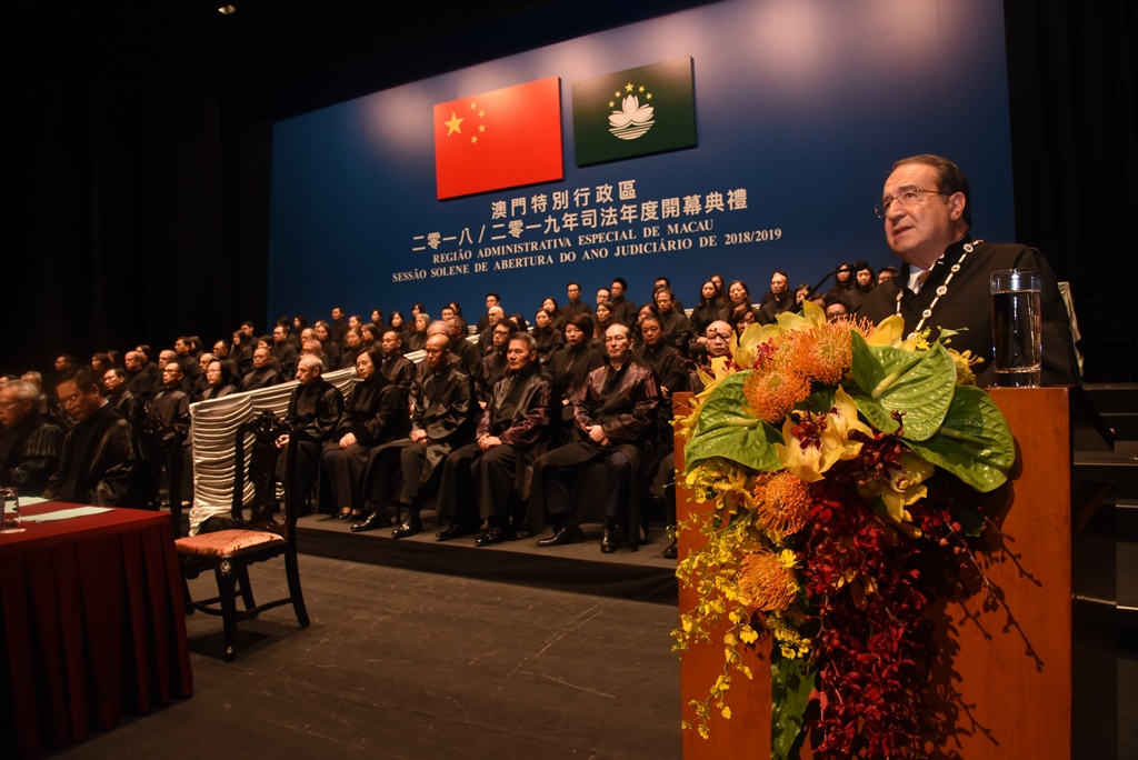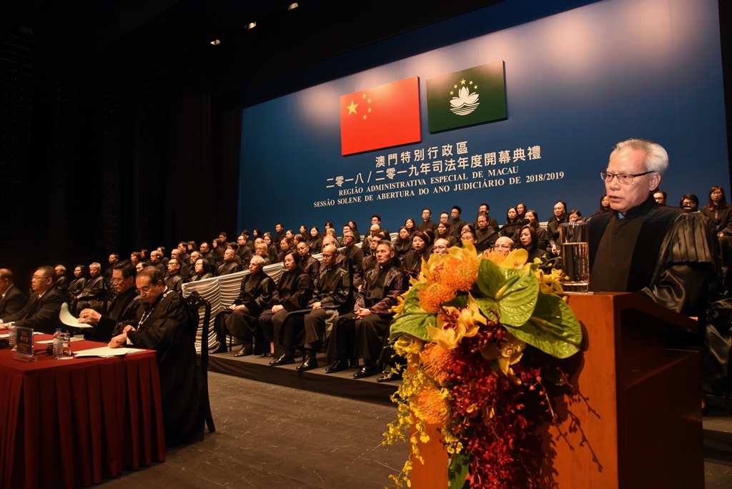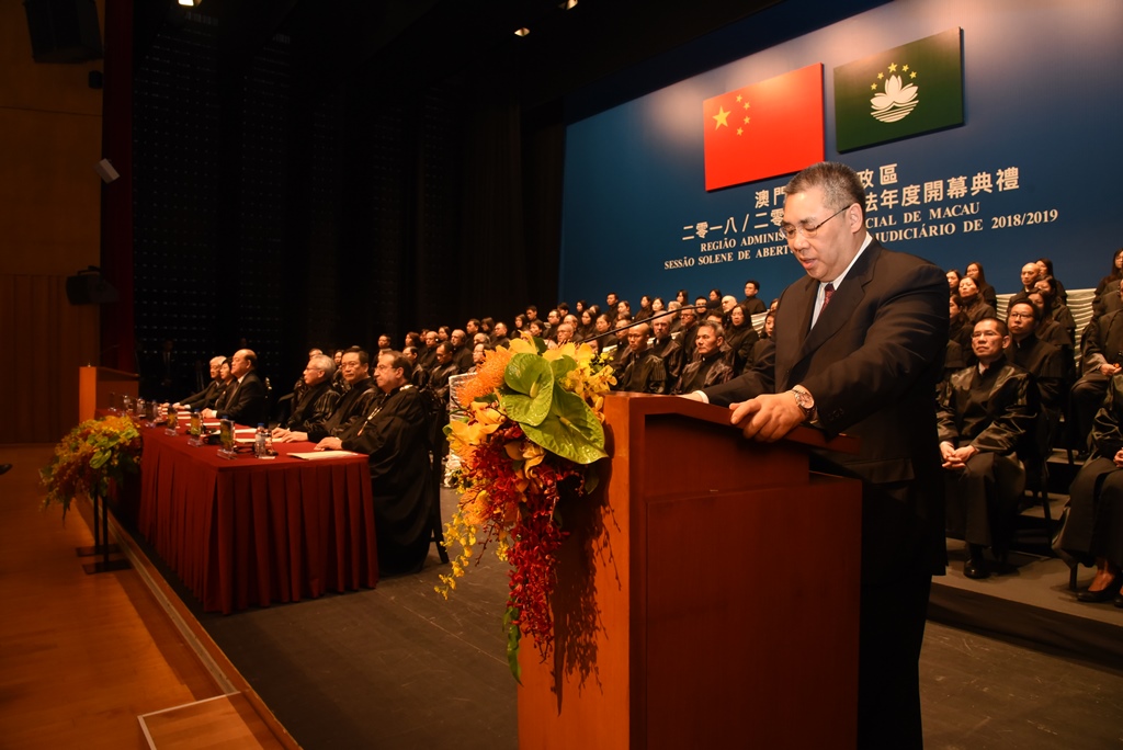 澳門特別行政區2018/2019年司法年度開幕典禮,於10月19日下午3時30分假文化中心小劇院隆重舉行。典禮由行政長官崔世安主持,立法會主席賀一誠、終審法院院長岑浩輝、行政法務司司長陳海帆、檢察長葉迅生、推薦法官的獨立委員會主席劉焯華和律師公會理事會主席華年達在主禮臺就座。