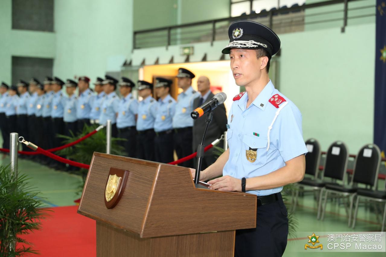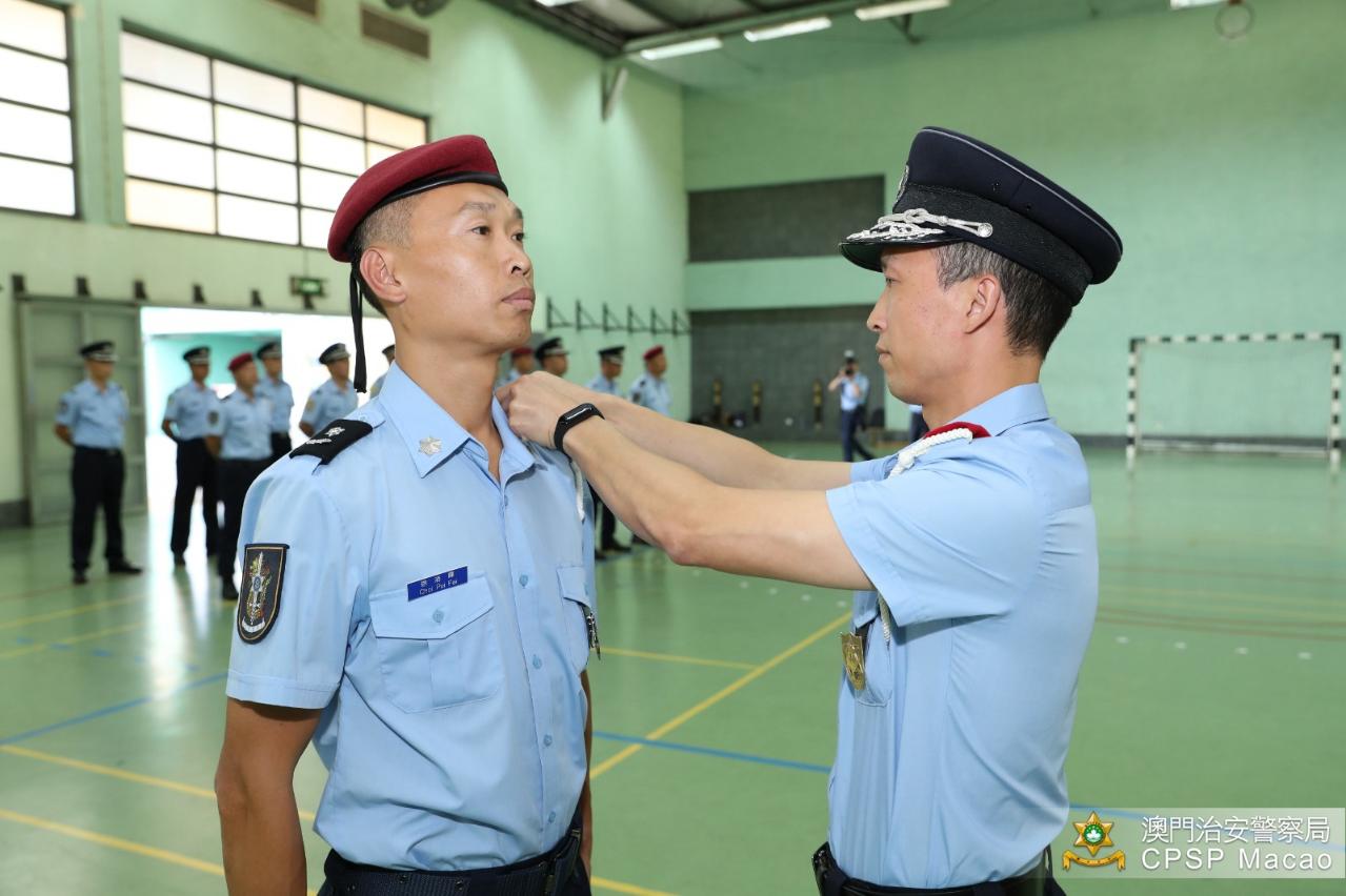治安警察局黃子暉代局長為第一名完成課程的警長佩戴肩章