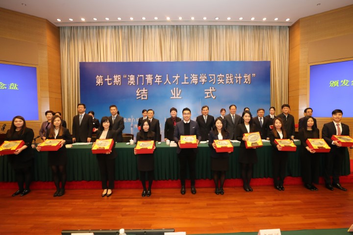 2018“澳門青年人才上海學習實踐計劃”昨日(11月29日)舉行結業式,全國政協港澳臺僑委員會副主任康曉萍、上海市政協副主席徐逸波、中聯辦協調部副部長張深居、澳門基金會行政委員黎振強等出席了儀式。主辦單位寄語學員以自身的本領和熱情回饋社會、建設特區、報效祖國。