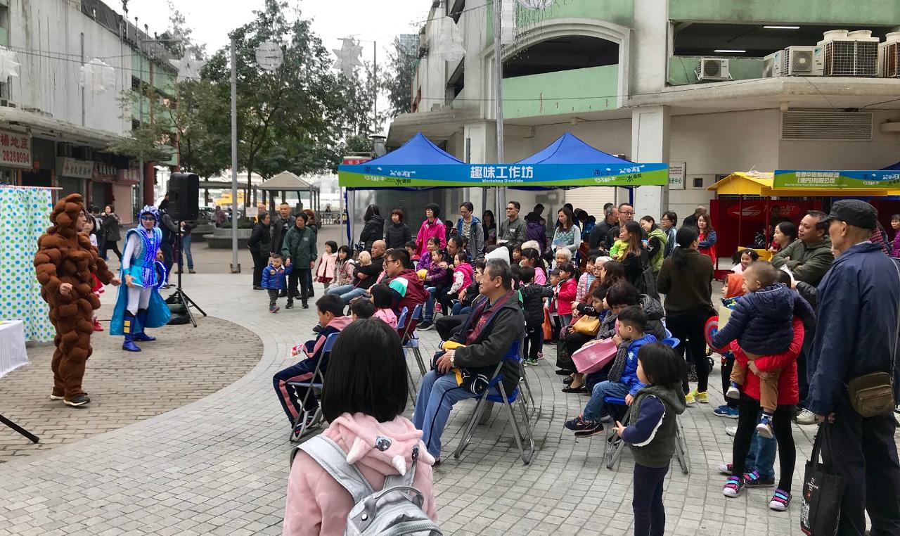 “海安全‧水優質”社區巡禮現場設有多個以航行安全、海事及客運知識、維護管理樓宇自來水系統、清洗水箱方法、節約用水等為主題的攤位遊戲,還有鵝蛋牌彩繪工作坊和海事繩結工作坊,有趣互動之餘,大人和小朋友亦能從玩樂中學習到澳門海事和水資源知識,並注意到海上安全和維護管理樓宇自來水系統的重要性。活動期間更上演了精彩的《威水超人》節水話劇,深受小朋友喜愛的“威水超人”和“水汪汪姐姐”和市民玩節水遊戲和派送禮物,吸引了眾多小朋友踴躍參與。