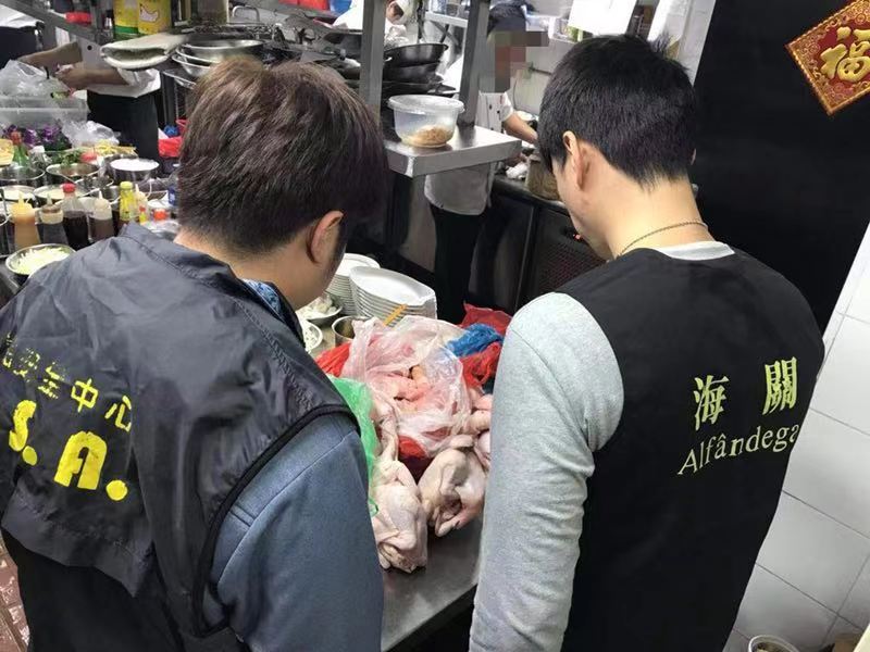 於本月十三、十七及十八日,澳門海關與民政總署食品安全中心在本澳市內採取聯合行動,打擊涉嫌銷售及走私未經檢疫食材的活動,期間有9間食肆及9名水客被查獲,共檢走蔬菜約220公斤、肉類28公斤、家禽20公斤、加工食品2公斤、醃制及豆類制品15公斤;另外在其中1名水客身上緝獲未完稅香煙22包(共440支)。