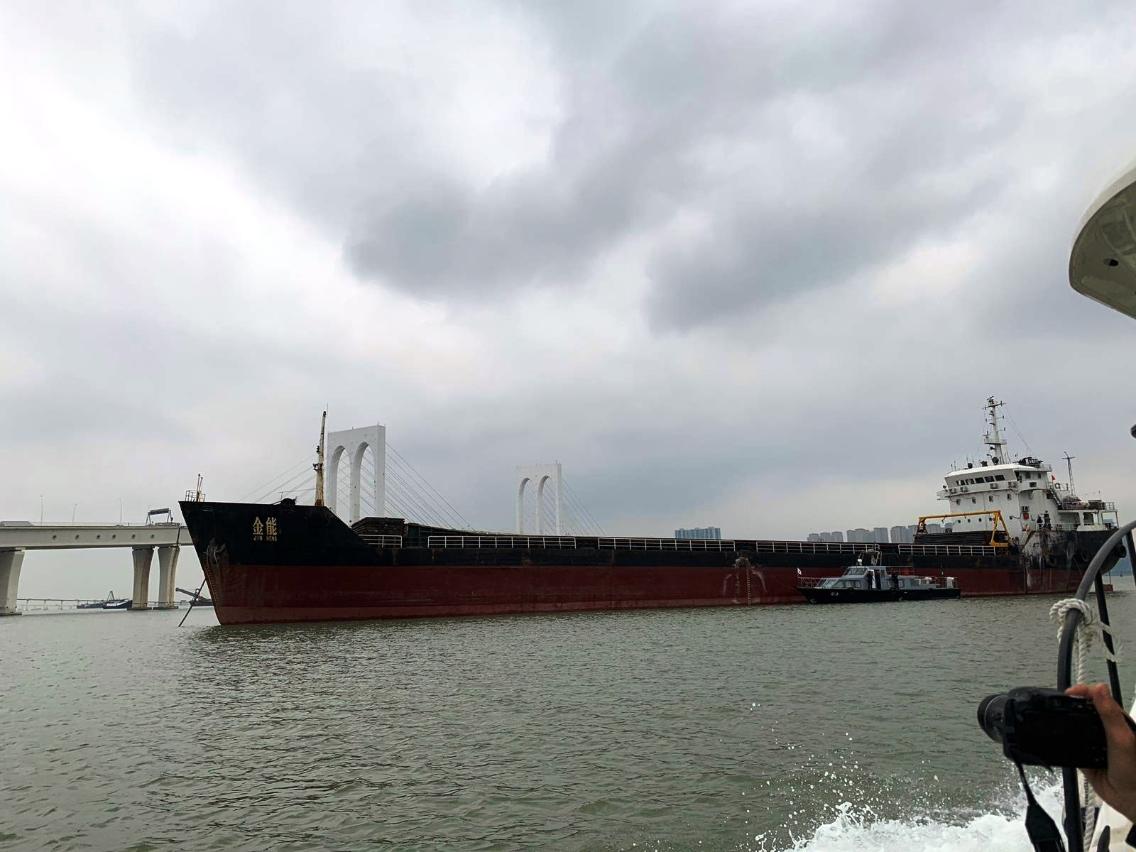 本月14日清晨約5時20分,散貨船“金能XX”沿往內港航道向東行駛,駛至機場跑道東北對開海面期間懷疑偏離航道,擦碰到M4號浮標並把浮標拖行了約半海里後不顧而去。海事局船舶交通管理中心於今日早上11時許,透過雷達監察系統發現肇事船於往內港航道往西航行,隨即通報海關協助攔截。海關截停肇事船隻後通知海事局跟進,期間船隻一度試圖駛離,被海關船隻再次截停。