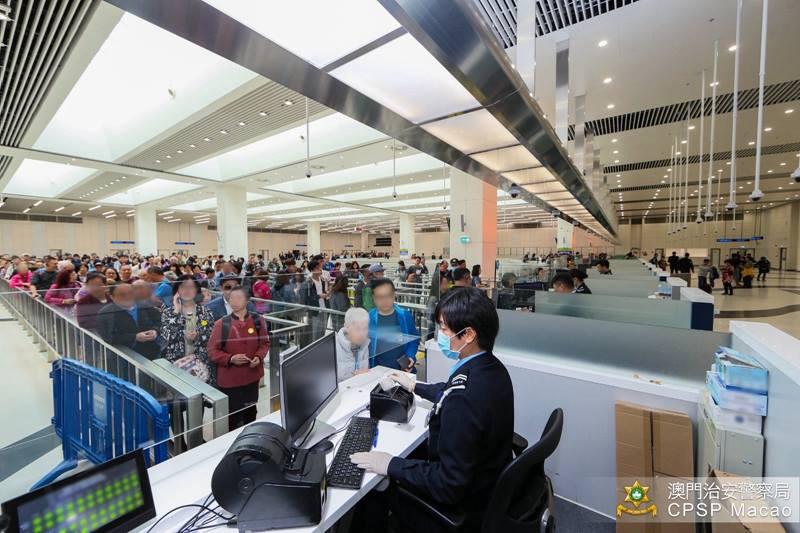 出入境方面,治安警察局於各邊境站加開驗證櫃檯疏導人流,保持通關暢順。12月20至26日,經本澳各邊境站出入境的人次達388萬,較去年的352萬增加約9.4%,當中以經關閘邊境站及港珠澳大橋澳門口岸為主,分別有272萬及34萬人次;出入境人次的高峰出現在12月25日,單日約57萬6千人次出入境。