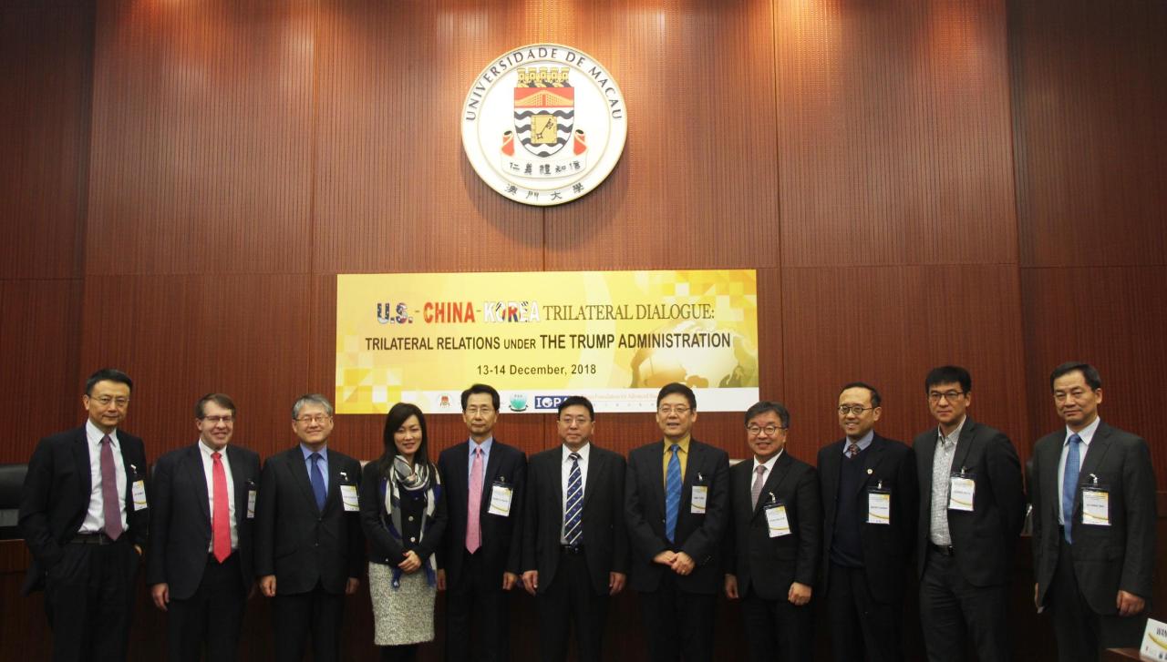 由澳門大學社會科學學院和韓國高等教育財團主辦,社會科學學院全球與公共事務研究所承辦的“特朗普治下的中美韓三邊關係”國際學術會議日前在澳大何賢會議廳舉行,吸引了來自中國、韓國和美國的一流中美關係和朝鮮問題專家分別就“中美關係”、“朝鮮半島”和“三邊關係中的經濟與地緣政治問題”進行深入探討。