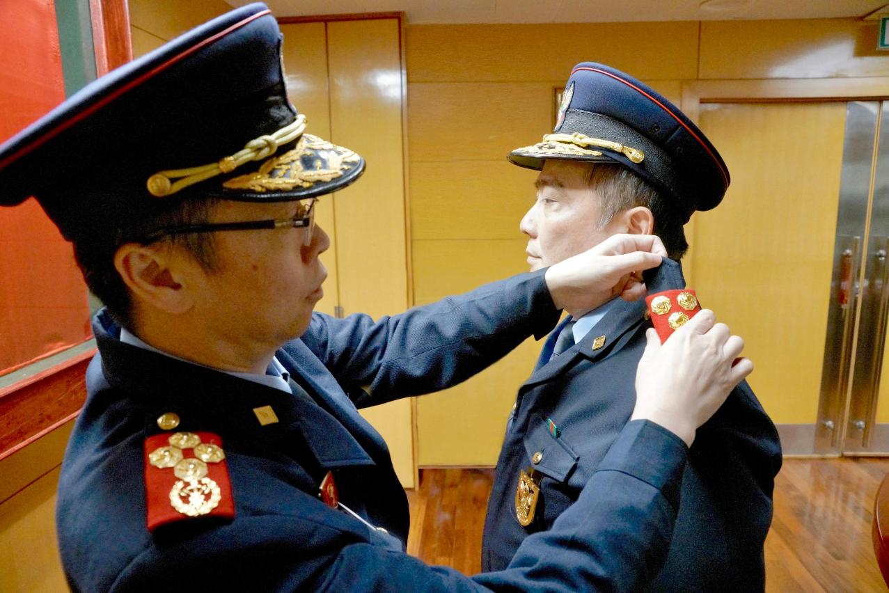 消防局局長梁毓森為區耀榮副局長戴上新肩章