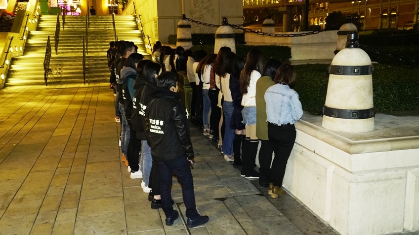 另外,於同日晚上,司警局派出27名刑事偵查員前往路氹金光大道一帶進行巡查,是次行動共截獲26名內地女子。經調查後,所有人均承認來澳從事賣淫活動,且在調查期間發現其中一名女子為非法入境者,並持有偽造入境申報表,就有關情況,司警局已另立專案處理。