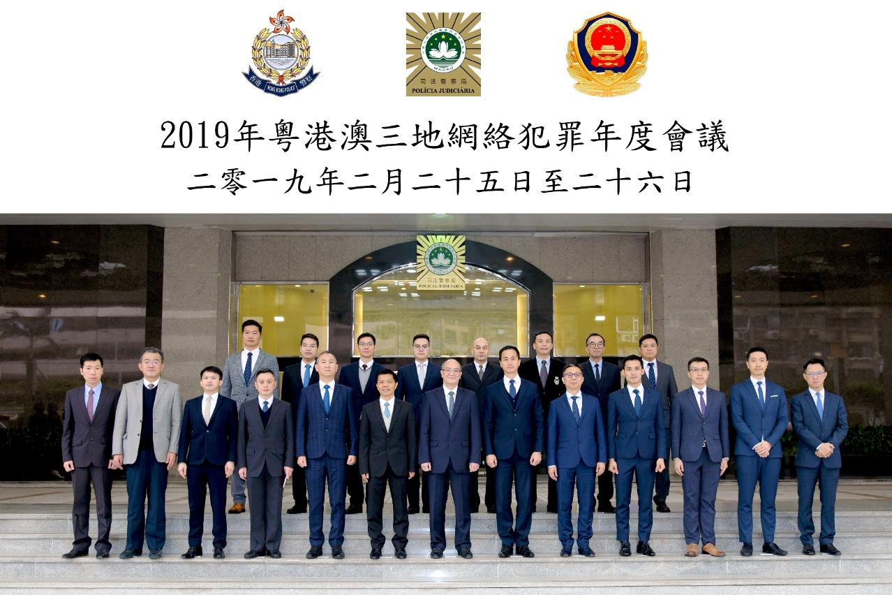 “2019年粵港澳三地網絡犯罪年度會議”於2019年2月25日及26日在司法警察局總部大樓舉行,廣東省公安廳及轄下的廣州、深圳、珠海、惠州、東莞及中山等市公安局的網警部門,香港警務處網絡安全及科技罪案調查科,以及司警局網絡犯罪的調查及取證部門,合共二十多名代表出席會議。會議期間,粵港澳三地網警代表共同商議如何加強情報交流及技術培訓,並探討制定更深入的合作機制及計劃,與會者並參觀司警局電腦法證處及多媒體展覽廳,藉此瞭解局方在打擊網絡犯罪的軟硬件配置和相關工作成效。