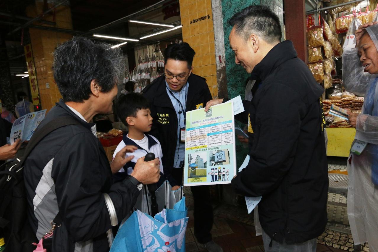 去年強颱風“山竹”襲澳,特區政府啟動“颱風期間風暴潮低窪地區疏散撤離計劃”,民防單位高效執行計劃,有效保障居民生命安全。因應颱風季節即將來臨,為提醒居民及早做好應對準備,警察總局統籌司法警察局,聯同“司警局大廈防罪之友”會員,前往易受風暴潮影響的低窪地區,向居民及商戶宣傳防災避險資訊,講解撤離計劃的內容及注意事項,加深居民對計劃的瞭解。