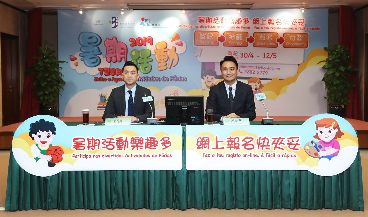 由教育暨青年局和體育局主辦的2019暑期活動今年將首次實施網上報名。主辦單位於3月27日在教青局仲尼堂舉辦了記者招待會,教青局副局長龔志明和體育局副局長劉楚遠公佈了有關網上報名的安排,並介紹了一系列的宣傳工作,為2019暑期活動揭開序幕。