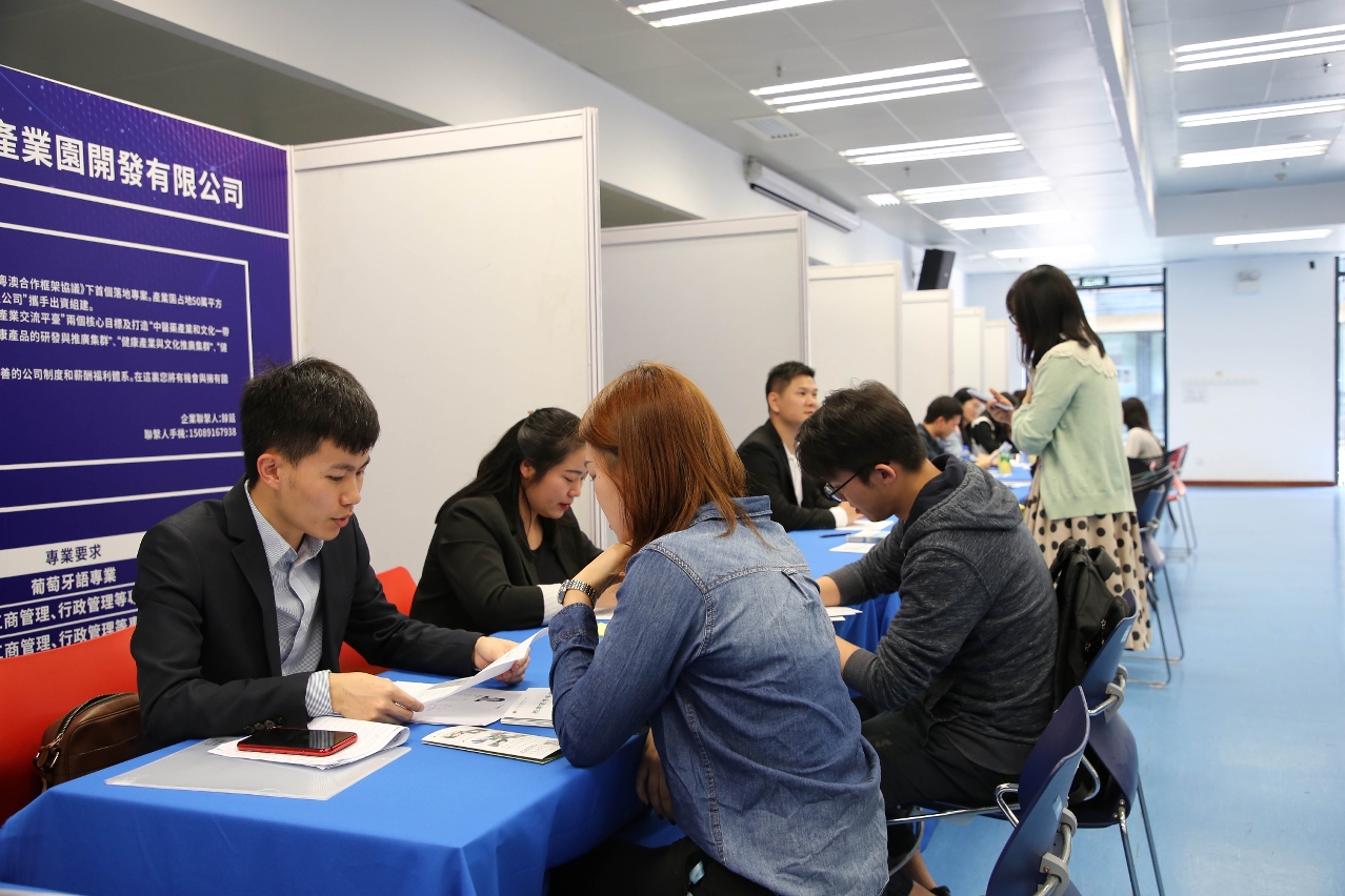 橫琴新區率企業今(27)日到澳門大學舉辦招聘會,共有26間橫琴的企業和機構特意來澳大招攬人才,行業涵蓋生物醫藥、生物科技、智能設備製造、網絡科技、銀行及金融等行業,提供超過240個職位空缺,積極推動應屆畢業生把握橫琴發展機遇,到大灣區就業。