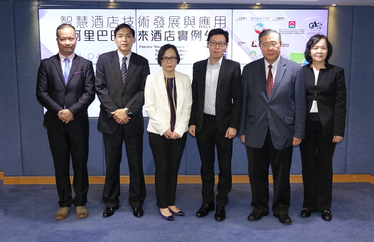 由郵電局主辦、旅遊局及澳門生產力暨科技轉移中心協辦、澳門酒店協會及澳門酒店旅業商會為支持單位的「智慧酒店技術發展與應用─阿里巴巴未來酒店實例分享」專題講座,已於2019年4月4日下午三時假澳門生產力暨科技轉移中心演講廳順利舉行。專題講座得到本澳酒店業界代表踴躍出席,出席嘉賓包括旅遊局許耀明副局長、澳門生產力暨科技轉移中心孫家雄理事長、郵電局梁祝艷副局長和資訊科技發展及資源管理廳葉頌華廳長等。