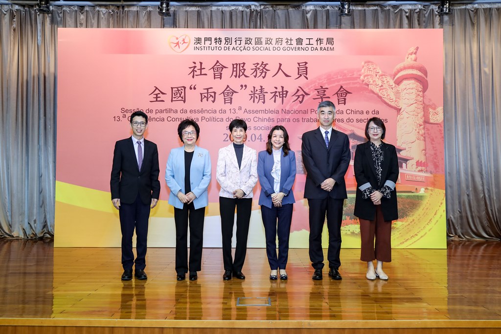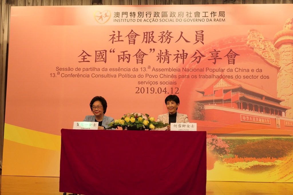 由社會工作局主辦 「社會服務人員全國 “兩會”精神分享會」於4月12日下午假鏡湖醫院放射大樓(綜合樓)三樓運動綜合禮堂舉行,有300多名社會服務人員出席聽取代表介紹「兩會」各項報告,國家工作部署為澳門帶來的機遇,以及國家領導人對澳門的期望。
